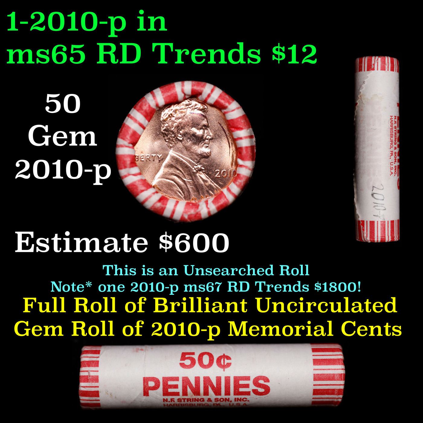Shotgun Lincoln 1c roll, 2010-p 50 pcs String & Son Wrapper.. A terrific Shotgun roll of Lincoln cents. Most if not all coin should be cherry red.