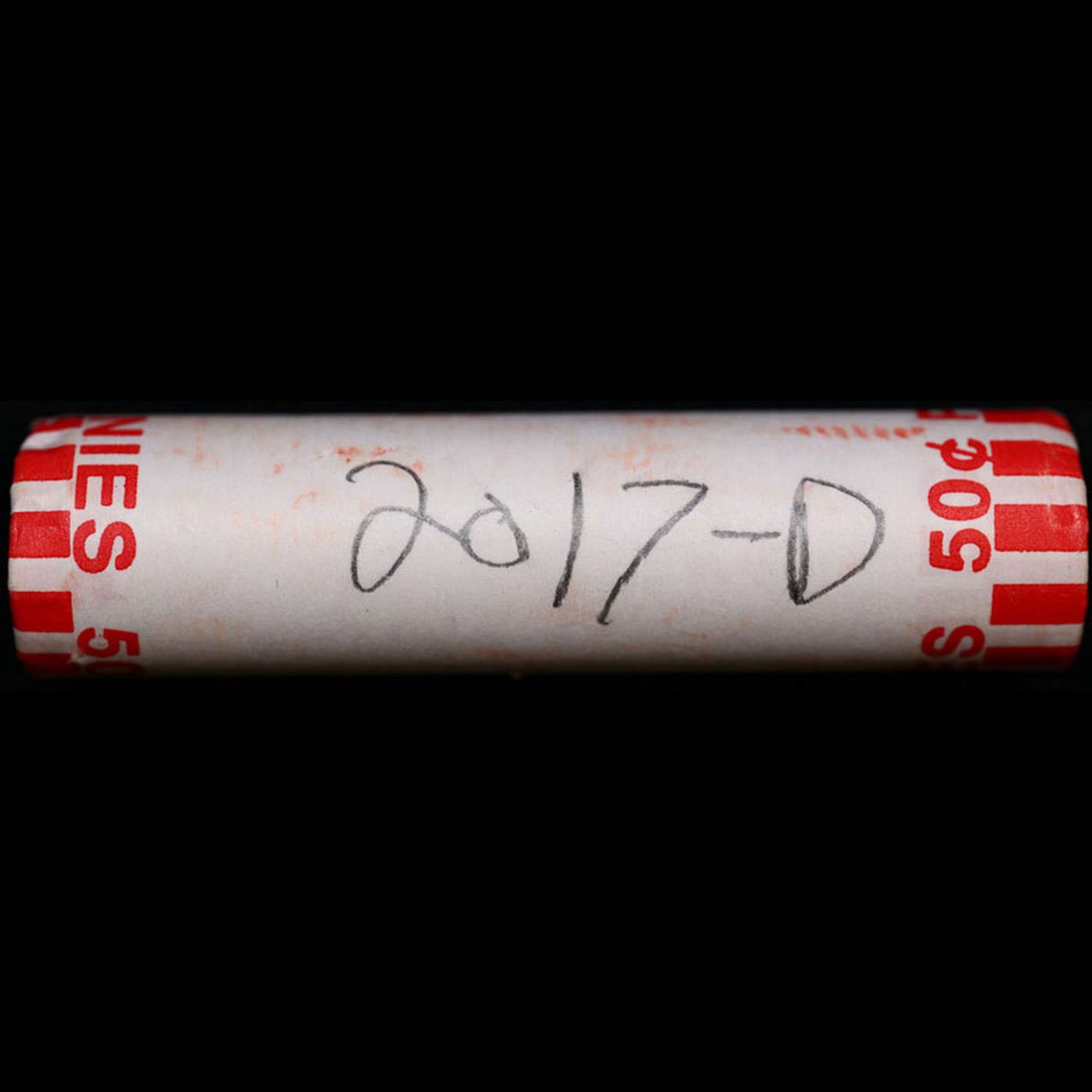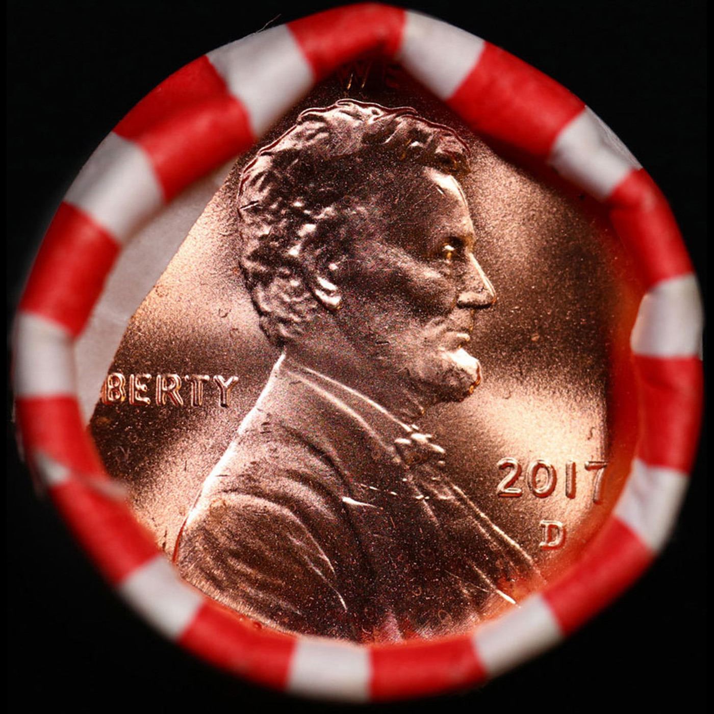 Shotgun Lincoln 1c roll, 2017-d 50 pcs Bank Wrapper.. A terrific Shotgun roll of Lincoln cents. Most if not all coin should be cherry red.