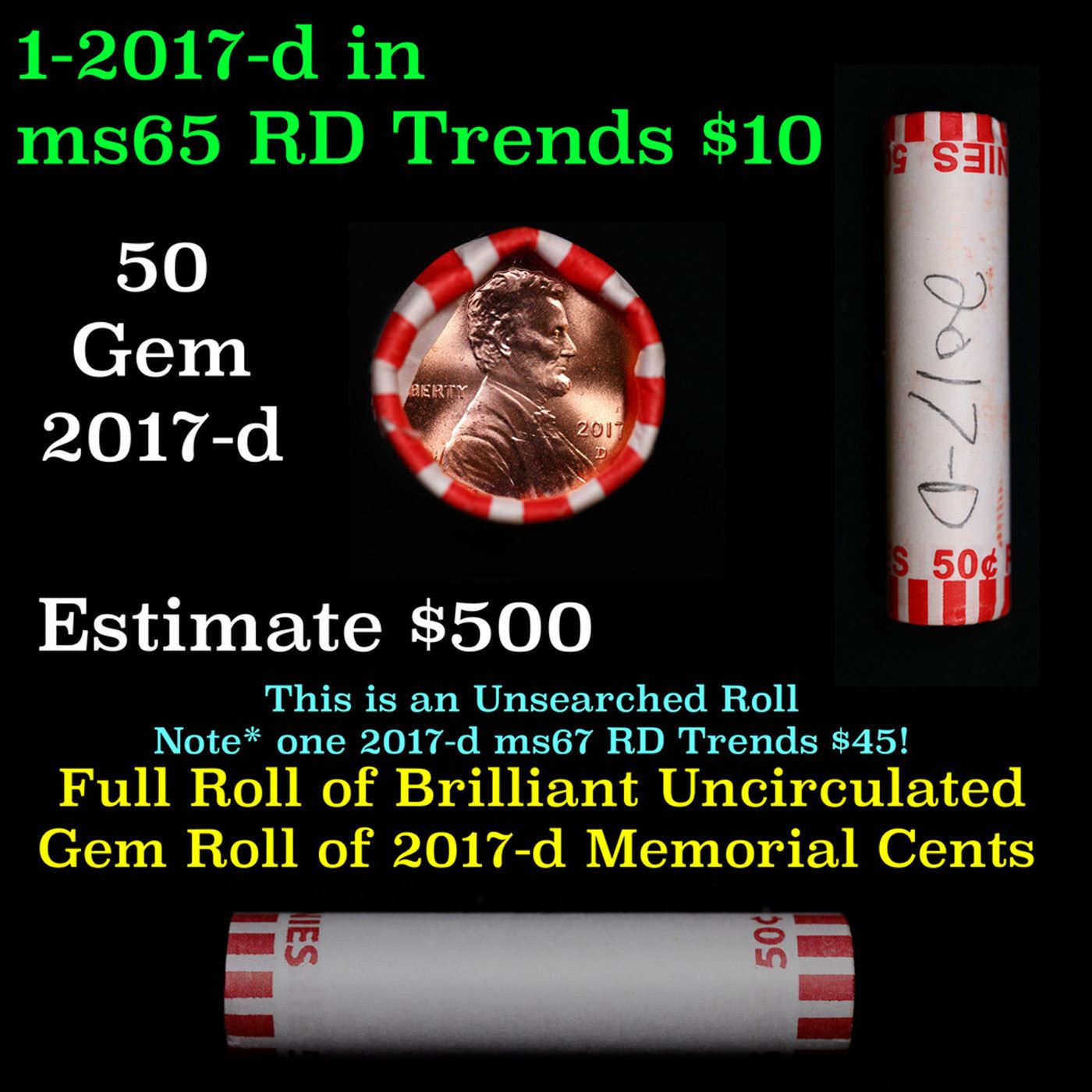 Shotgun Lincoln 1c roll, 2017-d 50 pcs Bank Wrapper.. A terrific Shotgun roll of Lincoln cents. Most if not all coin should be cherry red.