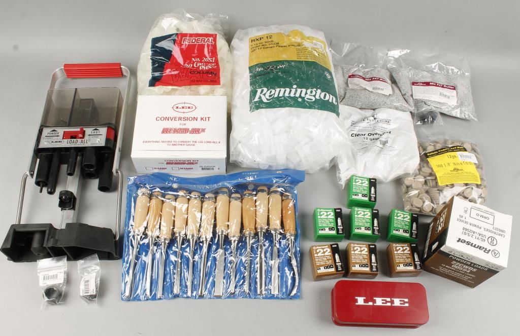 Includes: Lee load all tube press, 20 ga and 12 ga wads, and conversion kit for 20ga.