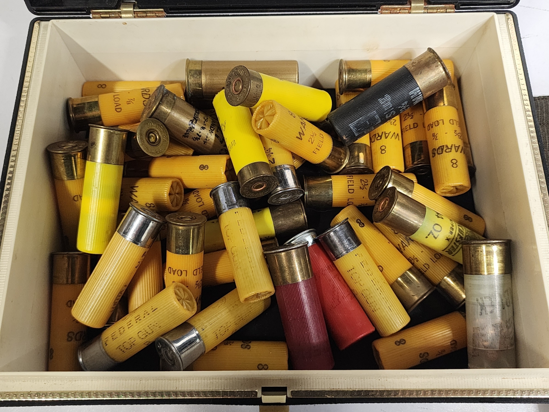 Shotgun Shells, Shell Holders, in Nice Vintage Cigar Box