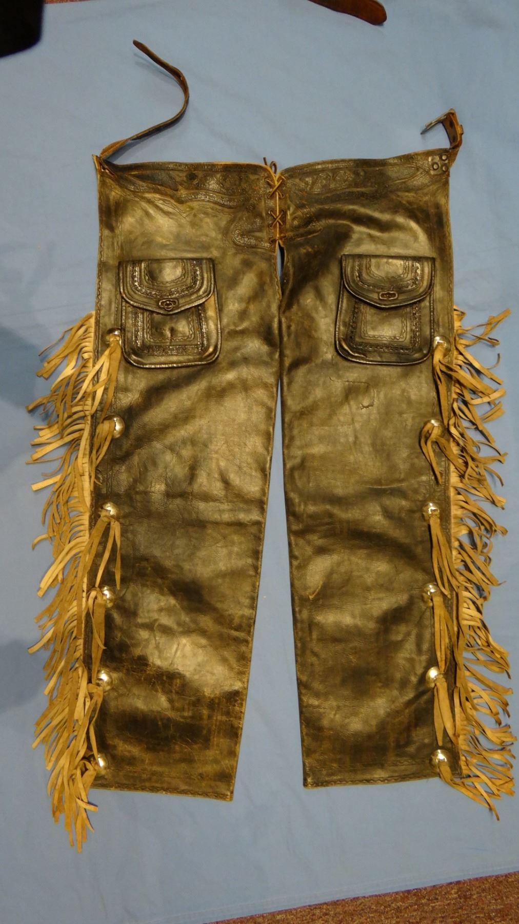 Shotgun chaps, pockets, fringed, unmarked