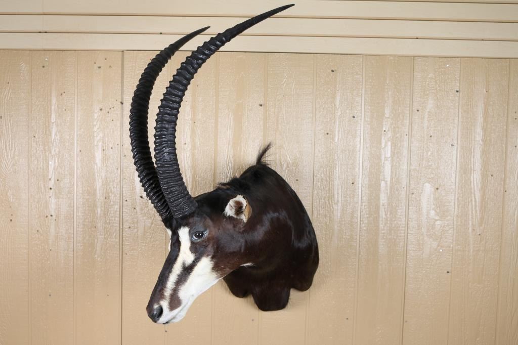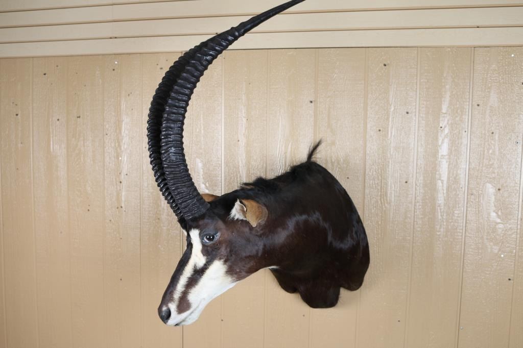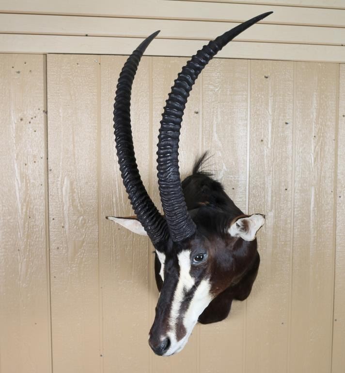 with beautiful ribbed approx 40" horns. Measures 42" shoulder to nose. Excellent Condition. Heavy - large - buyer to arrange pickup.