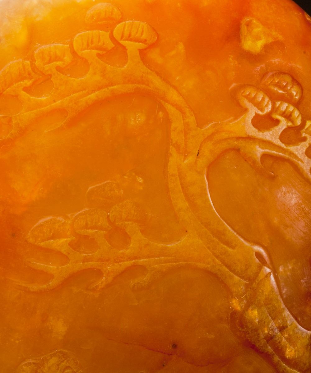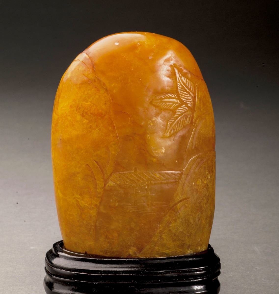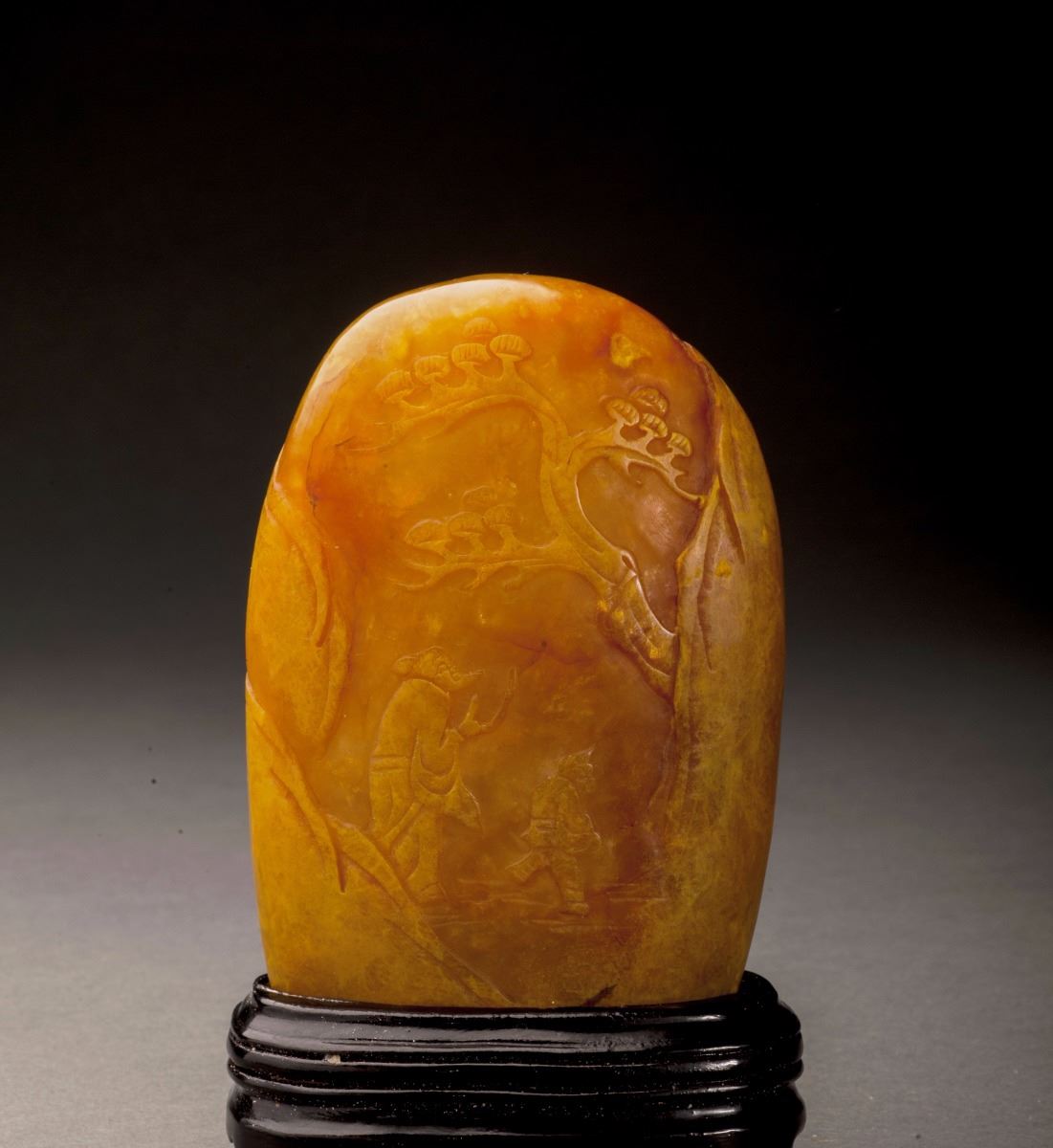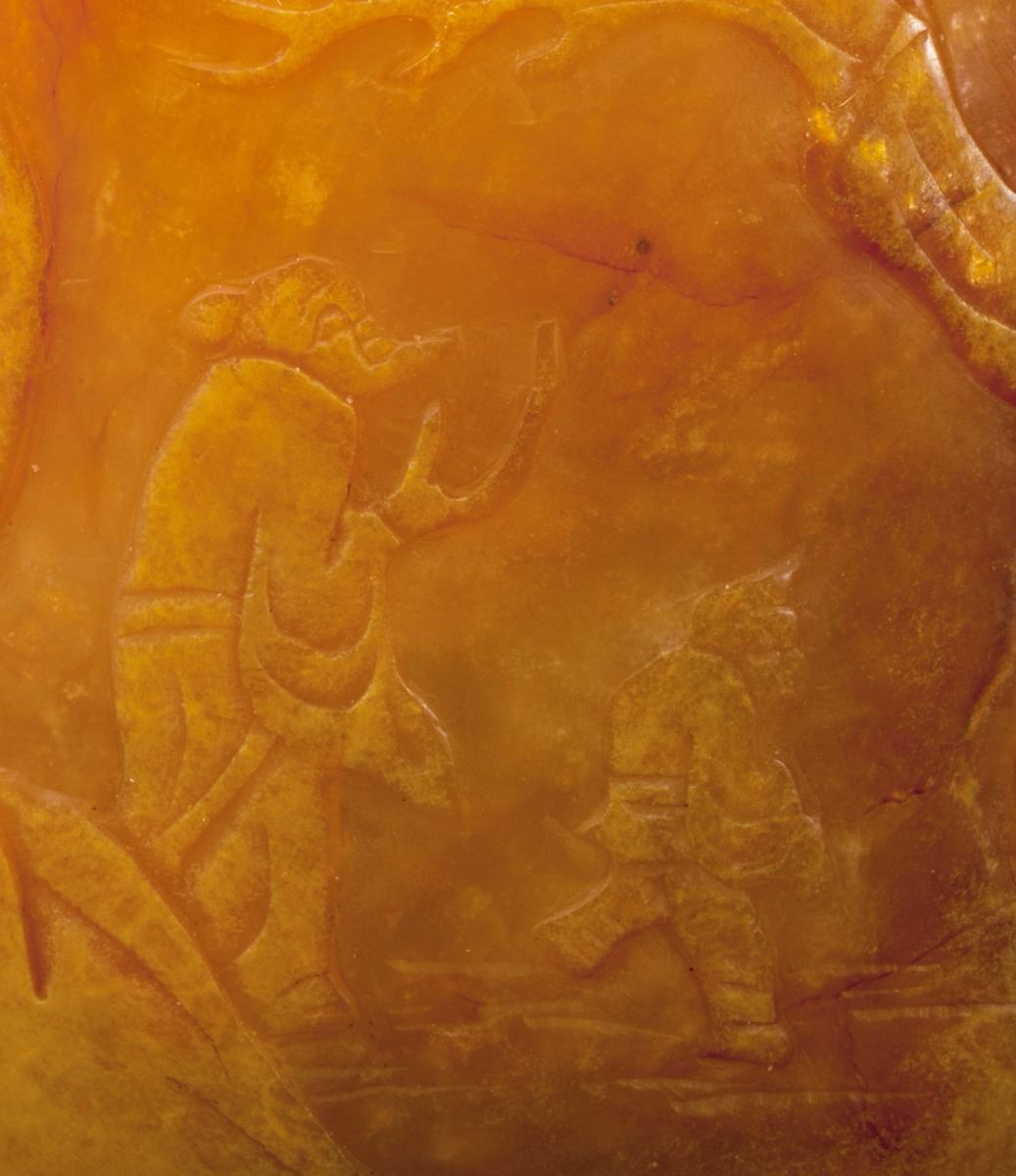Carved With Vivid Features Of A Person Standing Under The Vivid Tree, All Set Within The Mountain Landscaping. Within The Alternative Yellow Tone Throughout.