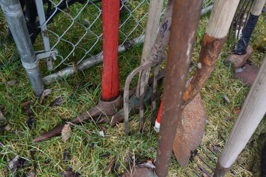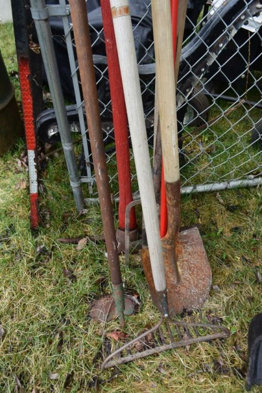 Shovel rake, hoe pitch fork, pickaxe, axe,