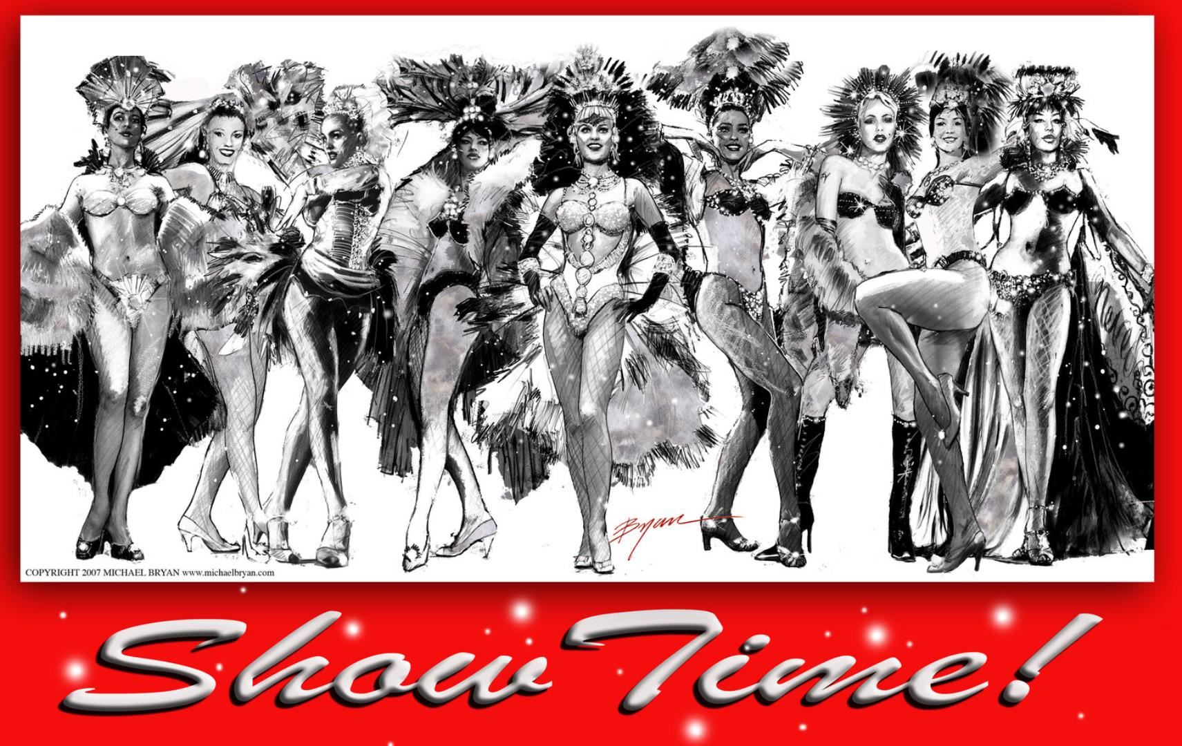 Las Vegas Showgirls entertain us in this 20x40" hand-embellished 1/1 unique giclee on canvas by Michael Bryan. With COA from artist.
