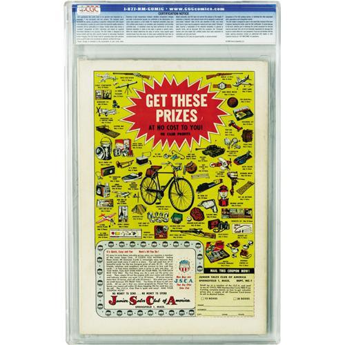 are sold ³as is² without any express or implied warranty. Certain warranties may be available from the grading services and the Bidder is referred to them for further details: Comics Guaranty Corporation (CGC), P.O. Box 4738, Sarasota, FL 34230. Subject to sections 57 and 58, bidders who intend to challenge authenticity or provenance of a lot must notify Auctioneer in writing within thirty (30) days of the Auction¹s conclusion. Auctioneer¹s maximum liability shall not exceed the high bid on that lot, which bid shall be deemed for all purposes the value of the lot. In the event Auctioneer cannot deliver the lot or subsequently it is established that the lot lacks title, provenance, authenticity, or other transfer or condition issue is claimed, Auctioneer¹s liability shall be limited to recission of sale and refund of purchase price. After one year has elapsed, Auctioneer¹s maximum liability shall be limited to any commissions and fees Auctioneer earned on that lot.
