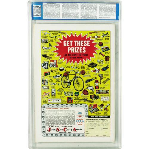 are sold ³as is² without any express or implied warranty. Certain warranties may be available from the grading services and the Bidder is referred to them for further details: Comics Guaranty Corporation (CGC), P.O. Box 4738, Sarasota, FL 34230. Subject to sections 57 and 58, bidders who intend to challenge authenticity or provenance of a lot must notify Auctioneer in writing within thirty (30) days of the Auction¹s conclusion. Auctioneer¹s maximum liability shall not exceed the high bid on that lot, which bid shall be deemed for all purposes the value of the lot. In the event Auctioneer cannot deliver the lot or subsequently it is established that the lot lacks title, provenance, authenticity, or other transfer or condition issue is claimed, Auctioneer¹s liability shall be limited to recission of sale and refund of purchase price. After one year has elapsed, Auctioneer¹s maximum liability shall be limited to any commissions and fees Auctioneer earned on that lot.