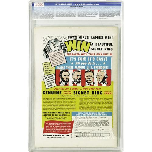 are sold ³as is² without any express or implied warranty. Certain warranties may be available from the grading services and the Bidder is referred to them for further details: Comics Guaranty Corporation (CGC), P.O. Box 4738, Sarasota, FL 34230. Subject to sections 57 and 58, bidders who intend to challenge authenticity or provenance of a lot must notify Auctioneer in writing within thirty (30) days of the Auction¹s conclusion. Auctioneer¹s maximum liability shall not exceed the high bid on that lot, which bid shall be deemed for all purposes the value of the lot. In the event Auctioneer cannot deliver the lot or subsequently it is established that the lot lacks title, provenance, authenticity, or other transfer or condition issue is claimed, Auctioneer¹s liability shall be limited to recission of sale and refund of purchase price. After one year has elapsed, Auctioneer¹s maximum liability shall be limited to any commissions and fees Auctioneer earned on that lot.