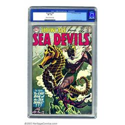 Showcase #29 (DC, 1960) CGC VF- 7.5 Cream to off-white pages. This early appearance of the Sea Devils features another amazing cover and interior artwork by the master, Russ Heath. The condition of this copy is quite nice, with no major defects, and only very light overall wear. Overstreet 2002 VF 8.0 value = $278. Important notice: We expect to be auctioning lots at the rate of 200-250 per hour. Sometimes eBay Premier live bid software cannot keep up with that pace, so we strongly recommend that you place a realistic proxy bid now as insurance to avoid disappointment. Also please note that all Heritage/CAA lots purchased through eBay Premier carry a 20% Buyer's Premium. Please make sure you read the Terms and Conditions.