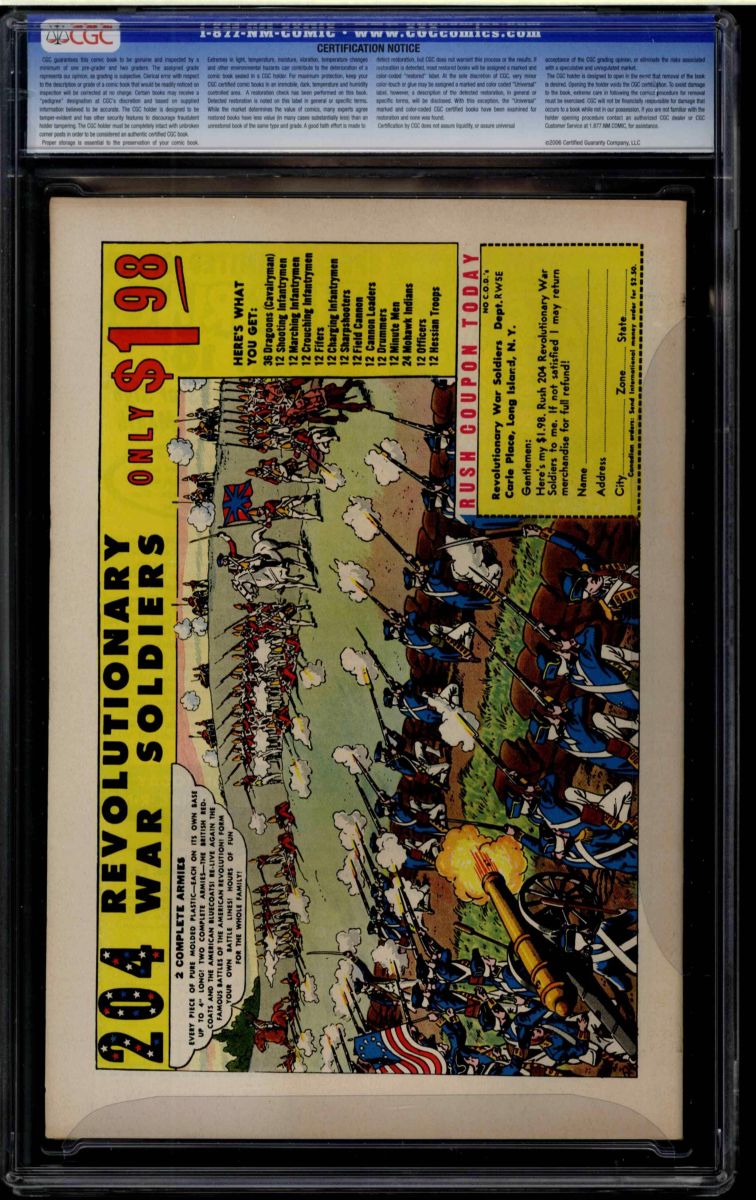 The Auctioneer has reserved the right to reject any and all bids, and to bid at the auction. Auctioneers Auctions are not on approval. Auctioneer does not allow certified material to be returned because of possible differences of opinion with respect to the grade offered by any third party organization, dealer, or service. Absolutely no guarantee of grade is offered for un-certified property sold and subsequently submitted to a third-party grading service. There will be no exceptions to this policy. Under extremely limited circumstances, (e.g. gross cataloging error) a purchaser, who did not bid from the floor, may request Auctioneer to evaluate voiding a sale; such request must be made in writing detailing the alleged gross error, and submission of the lot to the Auctioneer must be pre-approved by the Auctioneer. Bidder must notify Auctioneer in writing of such request within three (3) days of the non-floor bidder receipt of the lot. Any lot that is to be evaluated must be in our offices within 30 days after Auction. Grading does not qualify for this evaluation process nor do such complaints constitute a basis to challenge the authenticity of a lot. AFTER THAT 30-DAY PERIOD, NO LOTS MAY BE RETURNED FOR REASONS OTHER THAN AUTHENTICITY. Lots returned must be housed intact in the original holder. No lots purchased by floor Bidders may be returned (including those Bidders acting as agents for others). Late remittance for purchases may be considered just cause to revoke all return privileges. B: Auctions conducted solely on the Internet have a THREE (3) DAY RETURN POLICY: Lots paid for within seven days of the Auction closing are sold with a three (3) day return privilege. You may return lots under the following conditions: Within three days of receipt of the lot, you must first notify Auctioneer by contacting Client Service by phone (314-680-8599) or e-mail (moundcityauctions@gmail.com), and immediately mail the lot(s) fully insured to the attention of Returns, Mound City Auctions 1081 Teson Rd. Hazelwood, MO. 63042. Lots must be housed intact in their original holder and in their original condition. You are responsible for the insured, safe delivery of any lots. Auctioneer will not be responsible for lots returned in non-registered mail or lots returned without prior authorization per section B. A non-negotiable return fee of 5% of the purchase price ($10 per lot minimum) will be deducted from the refund for each returned lot or billed directly. Postage and handling fees are not refunded. After the three-day period (from receipt), no items may be returned for any reason. Late remittance for purchases revokes all Return-Restock privileges. C: Bidders who have inspected the lots prior to the auction will not be granted any return privileges. D: Comic books sold referencing a third-party grading service are sold “as is” without any express or implied warranty. Certain warranties may be available from the grading services and the Bidder is referred to them for further details: Certified Guaranty Company, LLC. (CGC), P.O. Box 4738, Sarasota, FL 34230. E: Bidders who intend to challenge authenticity or provenance of a lot must notify Auctioneer in writing within thirty (30) days of the Auctions conclusion. In the event Auctioneer cannot deliver the lot or subsequently it is established that the lot lacks title, provenance, authenticity, or other transfer or condition issue is claimed, Auctioneer's liability shall be limited to rescission of sale and refund of purchase price; in no case shall Auctioneer's maximum liability exceed the high bid on that lot, which bid shall be deemed for all purposes the value of the lot. After one year has elapsed, Auctioneer's maximum liability shall be limited to any commissions and fees Auctioneer earned on that lot. F: All comics are guaranteed genuine, but are not guaranteed as to grade, since grading is a matter of opinion, an art and not a science, and therefore the opinion rendered by the Auctioneer or any third party grading service may not agree with the opinion of others (including trained experts), and the same expert may not grade the same item with the same grade at two different times. G: Since we cannot examine encapsulated comics, they are sold “as is”without our grading opinion, and may not be returned for any reason. Auctioneer shall not be liable for any patent or latent defect or controversy pertaining to or arising from any encapsulated collectible. In any such instance, purchaser's remedy, if any, shall be solely against the service certifying the collectible. H: Due to changing grading standards over time, differing interpretations, and to possible mishandling of items by subsequent owners, Auctioneer reserves the right to grade items differently than shown on certificates from any grading service that accompany the items. Auctioneer also reserves the right to grade items differently than the grades shown in the prior catalog should such items be reconsigned to any future auction. I: Although consensus grading is employed by most grading services, it should be noted as aforesaid that grading is not an exact science. In fact, it is entirely possible that if a lot is broken out of a plastic holder and resubmitted to another grading service or even to the same service, the lot could come back with a different grade assigned. J: Certification does not guarantee protection against the normal risks associated with potentially volatile markets. The degree of liquidity for certified collectibles will vary according to general market conditions and the particular lot involved. For some lots there may be no active market at all at certain points in time."