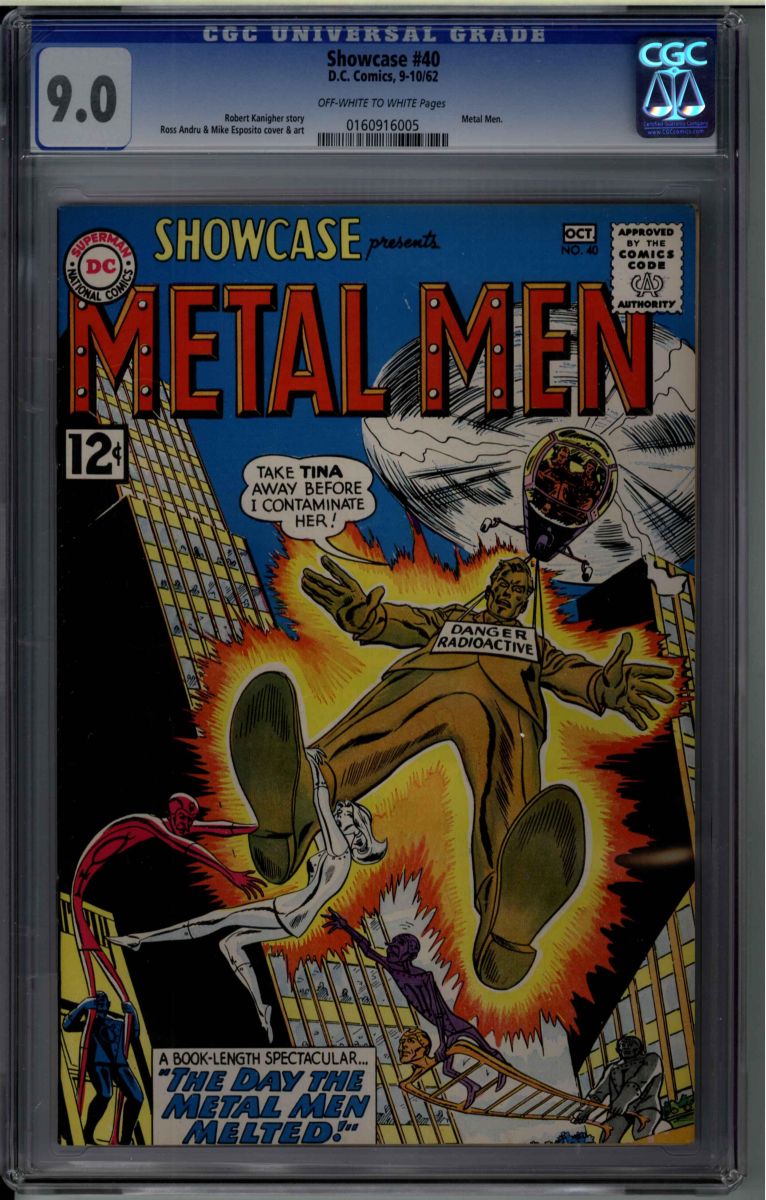 Showcase #40 CGC 9.0 off-white to white pages. Robert Kanigher story, Ross Andru & Mike Esposito cover & art. Overstreet 2009 VF/NM 9.0 value = $326. CGC census: 6 at 9.0, 5 higher.