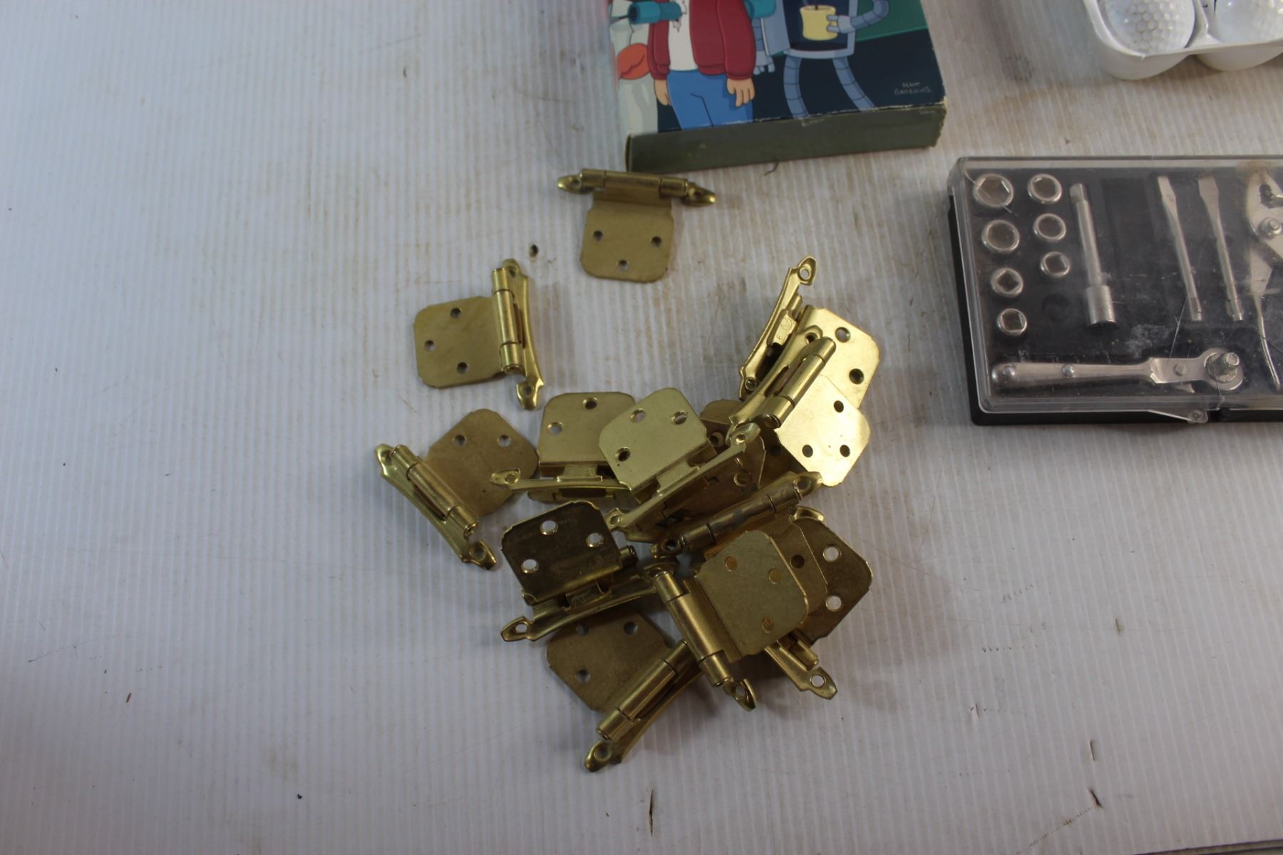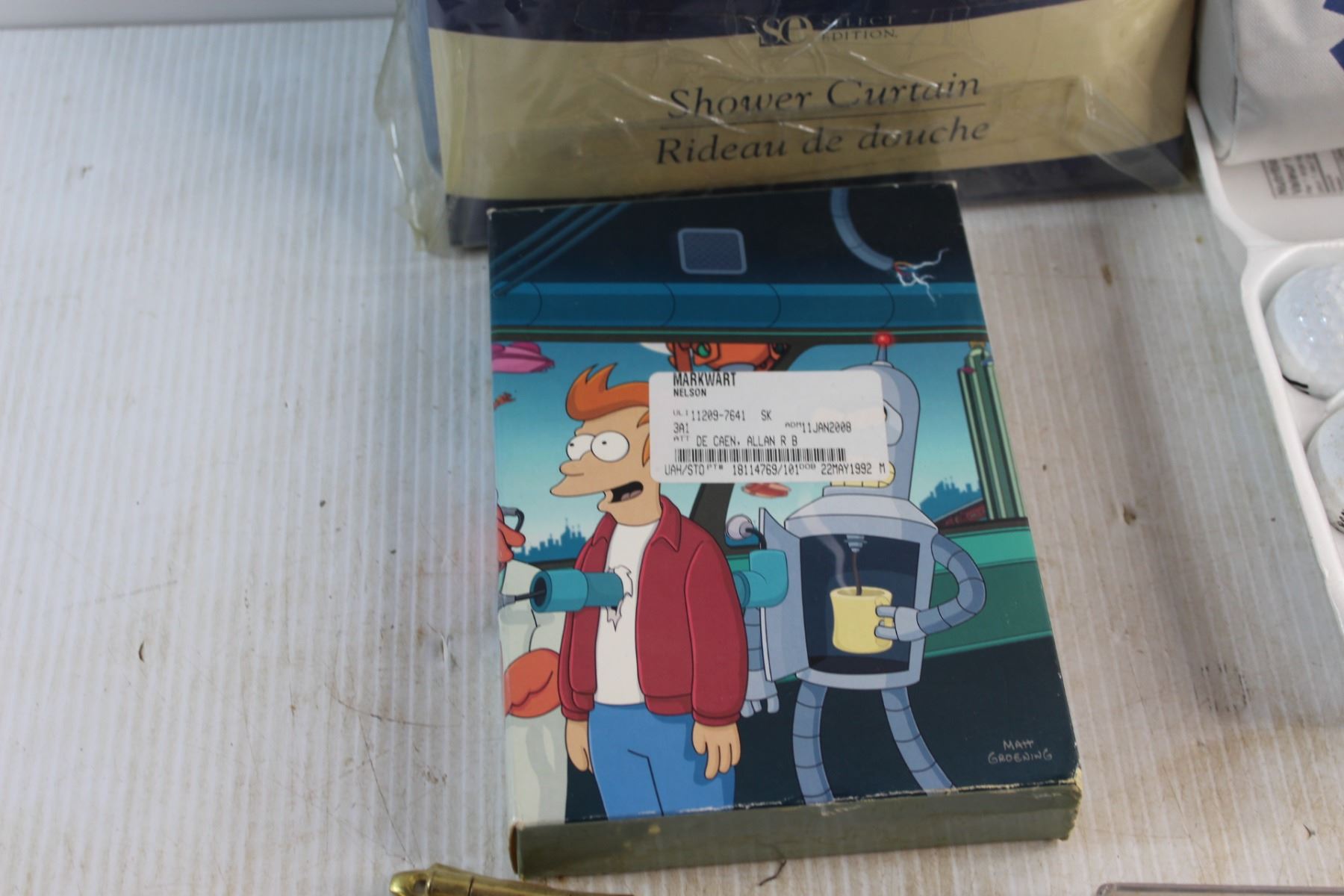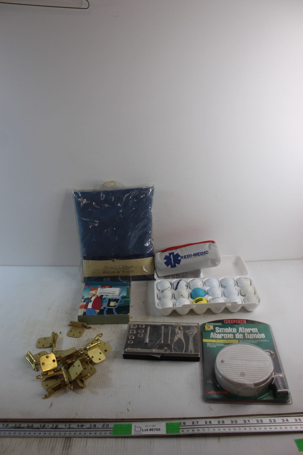 Shower Curtain, Hinges, Tool Set, Smoke Alarm, Futurama DVD Movies and Assorted Items