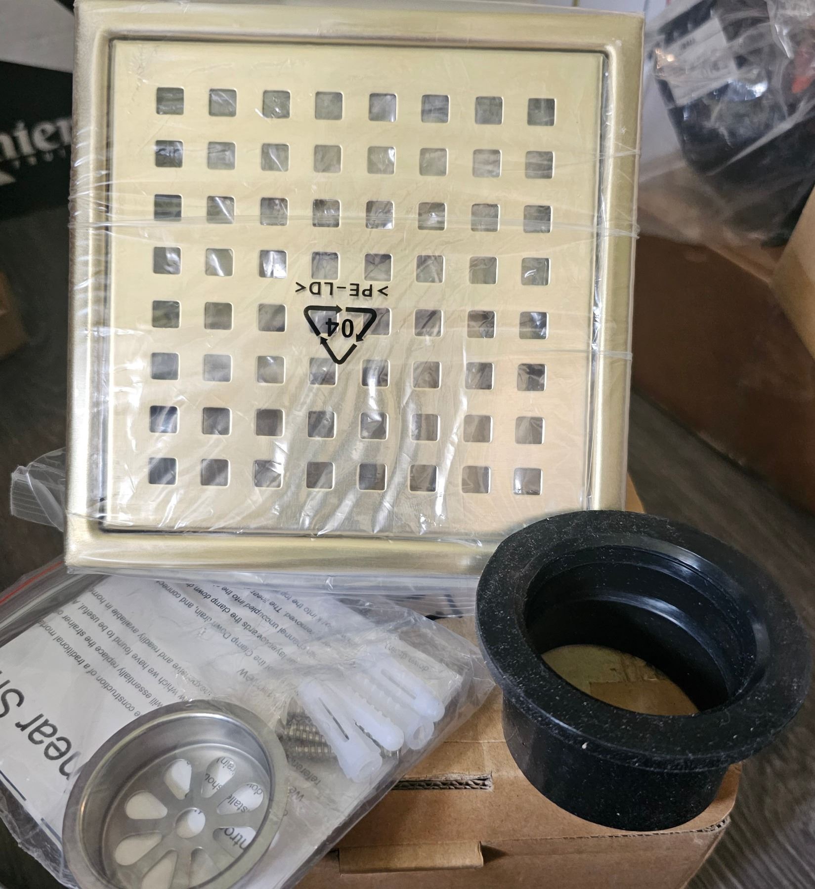 Linear Shower Drain, Gold Square Drain, Includes All Parts Needed For Installation, New Condition