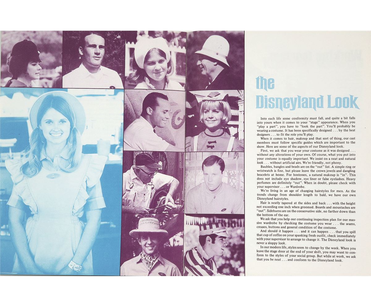 (Disneyland, 1973) A beautiful (20) page handbook for newly hired cast-members, explaining the Disneyland philosophy of the “show” as well as cast-member terminology and a brief outline of dress and grooming codes for 1973. Measures 8.5”x 11”. In very good condition with minor wear.