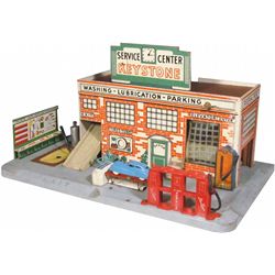 1940's Keystone Warehouse Toy. Cardboard boxes to load with wood constructed fork lift. Excellent original condition. 14 X 16 X 12 inches.
