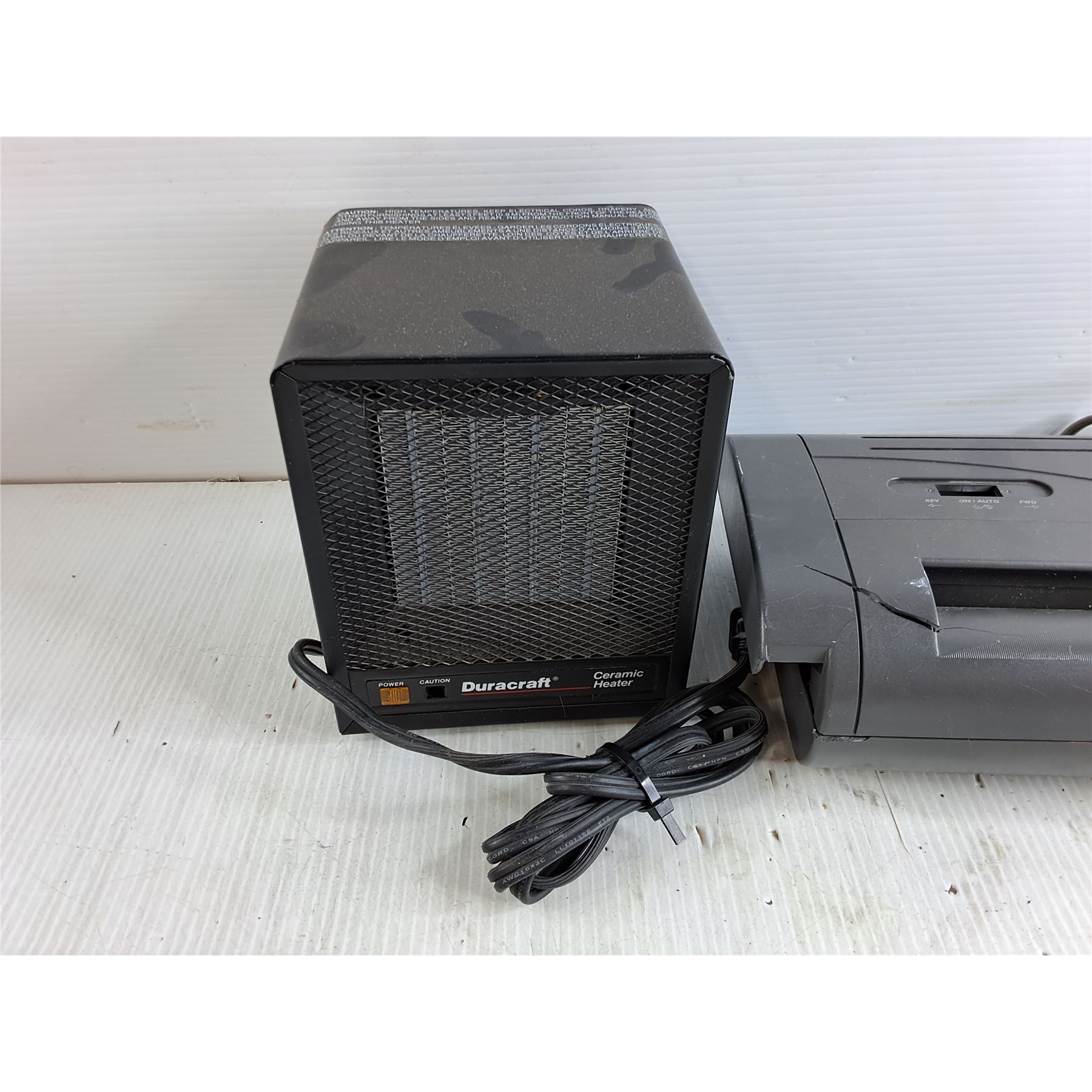 Shredmaster Paper Shredder, Duracraft Ceramic Heater - Powers On, As Is