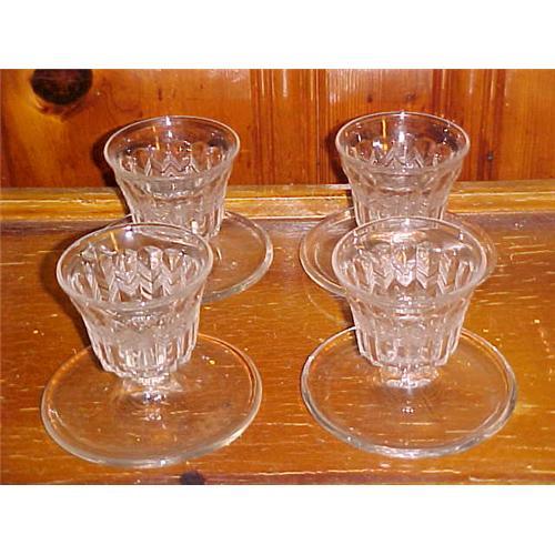 Pressed Glass Shrimp Cocktail Glasses; 3 mold, set of 4; zig-zag design; 3 mold
