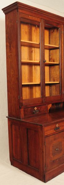 Eastlake Victorian Walnut Desk (6 Ft x 28-1/2" D x 29" H) . Hand dovetailed drawers, champhered. Circa 1850. Top unit (74" W x 13-1/2" D x 58-1/4" H) has original bead board back. Professionally restored.