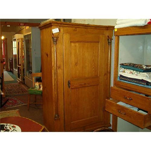 Wonderful piece of furniture. It is 2 pieces lengthwise held together by 2 wood "keys" (one on the top and one on the bottom). The wood is pine. I purchased it from a man in Alexandria, Virginia whos mother brought it from bavaria.
