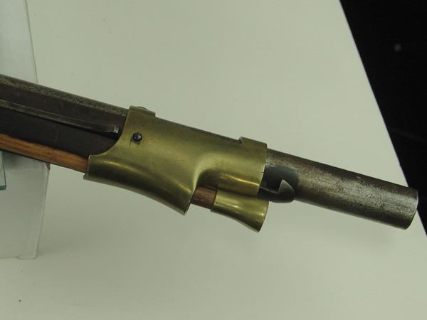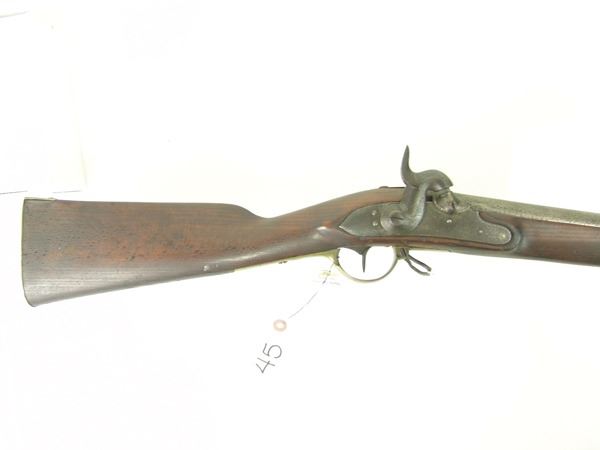 Rare, model 1830 longarm (converted to percussion in 1847) with 41" barrel, brass fixtures, and wooden ramrod. Marked "G. Shul 1833/11051 - 1847/171". Imported by W. Hahn, NYC, in 1862 with estimated quantity of "a few hundred". Very good condition.