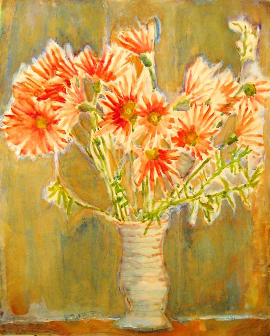 Shulamit Hermoni, Israeli Art, Flowers, Double-sided gouache, 51X40cm, Signed., , , , Double-sided painting.,