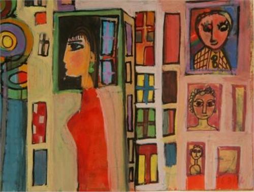 Shulamit Tal, B. 1919, Young Girl in the City, Gouache, 13x17 cm, Signed, , , , ,