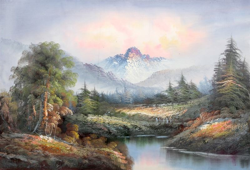 Shumu Fu, Spring Mountain Landscape (51), Oil on Canvas (unsigned)