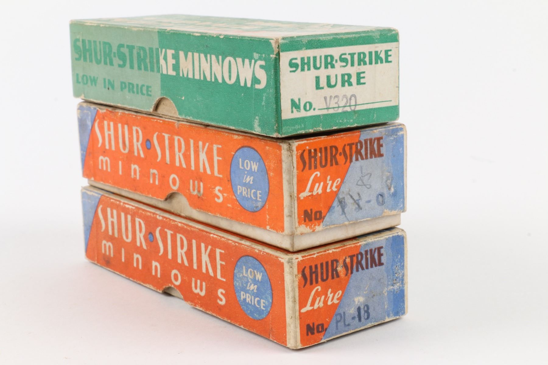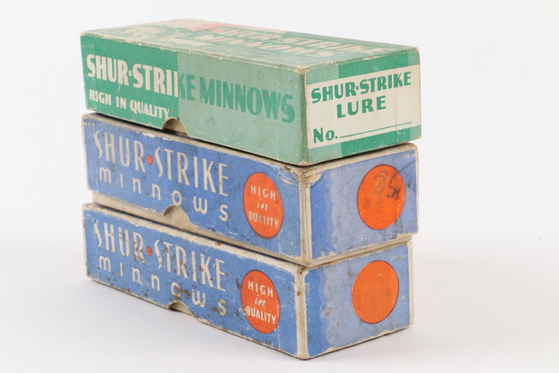 Shur-Strike, United States. Boxed. Material: Wood. Quantity: 3. Grade: VG-. 5.25" boxes. Est. $150-200.