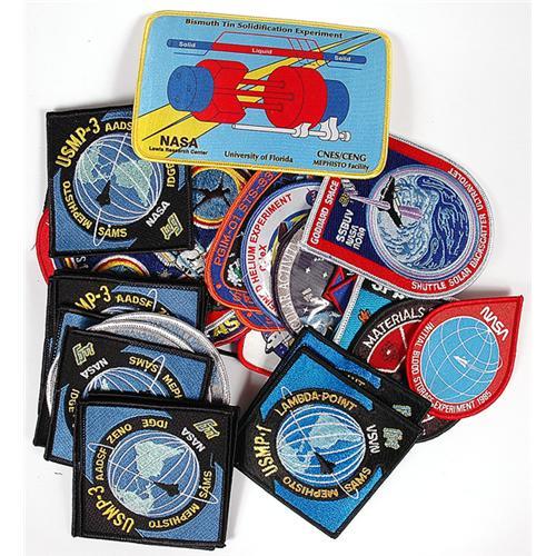<Our item number 137852><B>Shuttle Mission Patches.</B> An unusual lot of 50+ mission patches with duplication. We note such unusual patches as Kentucky Fried Chicken "Chix in Space", Zweo "G" Fects (sic), NASA Carriers for Payloads of Opportunity ("Hitchhiker"), Characterization of Neurospora Circadian Rhythms, Hubble Space Telescope, IMAX/Omnimax, University of Maryland, University of Arizona, University of Florida, Tethered Satellite System, Terra Scout, Goddard Space Flight Center, etc. A diverse lot of patches not often available. <BR>Estimated Value $150 - 250. <BR><BR>Our item number 137852<BR><IMAGES><P ALIGN="CENTER"><IMG SRC="http://www.goldbergcoins.net/liveauction/49jpegs/137852.jpg"> </P></IMAGES>