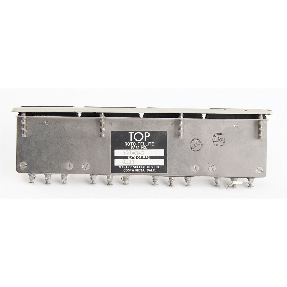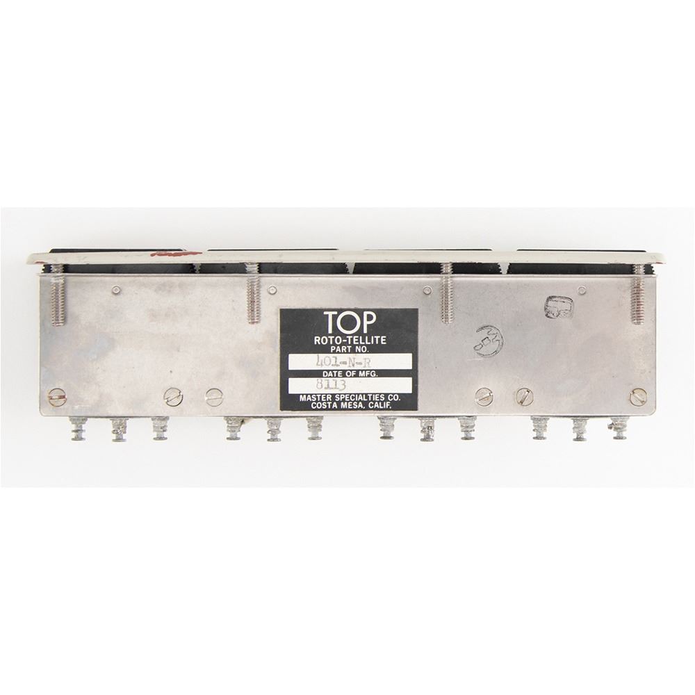 Two Shuttle-era firing room indicator panels, measuring 6.75è x 1è x 2è, with Roto-Tellite labels on the tops identifying them as "Part No. 401-N-R, Date of Mfg. 8113." The marked "PWR ON" indicators read: "ID100 REDNDT," "ID200 REDNDT," "ID300 REDNDT," "ID500 REDNDT," and "ID800 REDNDT." In fine condition.