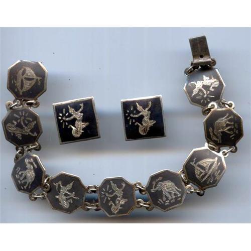 <tr><td>Title: Siam Sterling Niello Bracelet Earrings set</td></tr>
