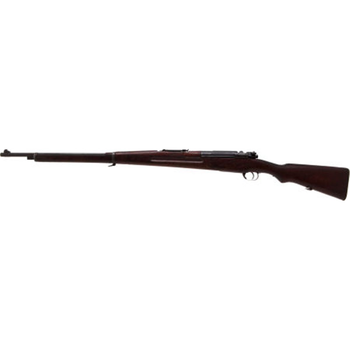 Siamese Mauser Bolt Action Rifle. Serial no. 1594, 8mm, 29-inch barrel with ramped blade front and ladder rear military sights. Blued finish. Bayonet lug. Japanese arsenal mark on left side of receiver. Siamese crest on breech. Dust cover. Hardwood stock with finger grooves, sling swivels and single barrel band. Steel buttplate with storage compartment.Condition: Very good as possibly refinished. Pitting visible under finish. Bore dark, with moderate wear and light pitting. Stock good with age wear and patina. Numerous dents.NRA FIREARMS FOR FREEDOM PROGRAM
