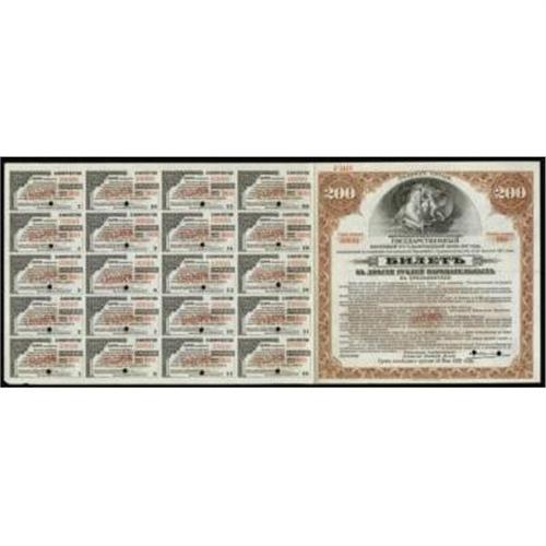 <style type="text/css"> body, td, th { font-family: Arial, Helvetica, sans-serif; font-size: 12px; color: #482424; margin: 0px; padding: 0px; } #header { background-image: url(http://www.bowersandmerena.com/ebay/images/template_v3_01.gif); clear: both; background-color: #590303; border-top-width: 2px; border-top-style: solid; border-top-color: #B38C4F; } #header #header_wrapper { height: 75px; clear: both; width: 800px; margin-right: auto; margin-left: auto; background-image: url(http://www.bowersandmerena.com/ebay/images/template_v3_03.gif); background-repeat: no-repeat; background-position: right; color: #F3EDCC; } #header #header_wrapper #header_logo { float: left; height: 75px; width: 444px; background-image: url(http://www.bowersandmerena.com/ebay/images/template_v3_02.gif); background-repeat: no-repeat; font-size: 10px; text-transform: capitalize; color: #B38C4F; } #header #header_wrapper #header_right { float: left; height: 75px; width: 356px; text-align: right; } #header #header_wrapper #header_right #headerLoginBtn { margin-bottom: 30px; } #header #header_wrapper #header_right input#txtSearch { color: #B49056; border: 1px solid #B49056; width: 175px; padding-top: 3px; padding-right: 3px; padding-bottom: 4px; padding-left: 3px; } #nav { height: 37px; background-image: url(http://www.bowersandmerena.com/ebay/images/template_v3_05.gif); clear: both; } #nav #nav_wrapper { height: 35px; width: 800px; margin-right: auto; margin-left: auto; border-left-width: 1px; border-left-style: solid; border-left-color: #B38C4F; } #nav #nav_wrapper a { padding-right: 15px; padding-left: 15px; border-right-width: 1px; border-right-style: solid; border-right-color: #B38C4F; height: 25px; padding-top: 10px; display: block; float: left; text-decoration: none; font-weight: bold; color: #5D0303; } #nav #nav_wrapper a:hover { color: #B38C4F; } #nav #nav_wrapper #search { float: right; padding-top: 7px; } #nav #nav_wrapper #search #txtSearch { font-family: Arial, Helvetica, sans-serif; font-size: 10px; text-transform: uppercase; color: #D2AE75; border: 1px solid #B38C4F; padding: 3px; } #content_bgd { background-image: url(http://www.bowersandmerena.com/ebay/images/template_v3_09.gif); background-repeat: repeat-y; background-position: center; padding-top: 15px; padding-bottom: 15px; background-color: #FBFBDB; } #content_wrapper { clear: both; height: auto; width: 800px; margin-right: auto; margin-left: auto; } .LotDetailWhite { line-height:normal; font-size:13px; font-family: arial,helvetica,sans-serif; color: White; font-weight: bold; } .LotDetailInformation { line-height:normal; font-size: 13px; font-family: arial,helvetica,sans-serif; } .LotDetailMessage { line-height:normal; font-size: 13px; font-family: arial,helvetica,sans-serif; color: red; } } tr.HeaderAuctionTitle td { color: #000000; font-weight: bold; padding: 2px; background-image: url(http://www.bowersandmerena.com/ebay/images/template_v3_05.gif); background-repeat: repeat-x; border-bottom-width: 1px; border-bottom-style: solid; border-bottom-color: #B38C4F; } table.AuctionSummary a, table.AuctionSummary a:link, table.AuctionSummary a:visited { color: #0000FF; text-decoration: none; } } td.tableHeaderLeft { border-left-width: 1px; border-left-style: solid; border-left-color: #B38C4F; } td.tableHeaderRight { border-right-width: 1px; border-right-style: solid; border-right-color: #B38C4F; } td.tableCellMiddle { border-left-width: 1px; border-left-style: solid; border-left-color: #B38C4F; border-right-width: 1px; border-right-style: solid; border-right-color: #B38C4F; padding: 5px; } tr.footer td { border-top-width: 1px; border-top-style: solid; border-top-color: #B38C4F; } </style> </head> <body> <div id="header"> <div id="header_wrapper"> <div id="header_logo"> </div> <div id="header_right"> </div> </div> </div> <div id="nav"> <div id="nav_wrapper"> <a href="http://www.bowersandmerena.com">Our eBayLive Auctions</a> <a href="#PaymentInfo">Payment Information</a> <a href="#ShippingInfo">Shipping Information</a> <a href="#About">About Bowers and Merena</a> </div> </div> <div id="content_bgd"> <div id="content_wrapper"> <table width="100%" border="0" cellpadding="5" cellspacing="0" class="AuctionSummary"> <tbody> <tr class="HeaderAuctionTitle" style="height: 25px;"> <td align="left" class="tableHeaderLeft" > </td> <td align="center" class="tableHeaderRight"> <span style="font-size: large;">Lot #2184. Siberia & Urals. Government Bank, Committee Savings Loan Notes Issue Specimen Banknote--Bond, Unlisted Color and Date.</span> </td> </tr> <tr> <td colspan="3" class="tableCellMiddle"> Unlisted Date May 1917. Type Similar to P-S881 but Unlisted date. 290 Rubles Circulating Public bond with coupons attached. Brown and black. Bottom of bond has due date of May 16, 1928. Other than the color and date, the large bond portion without coupons is similar to P-S882, 200 Rubles and the intact coupon sheet is similar to P-S883, 90 Rubles; and, the individual coupons from the sheet are similar to PS-884, 4 Rubles 50 Kopecks. Specimen. Red specimen overprint, "00000" serial number and POCs. All of the text is in Russian. 20 coupons attached. Allegorical woman with shield, sword and child. Printed ABNC. Horizontal fold from archival storage, otherwise VF to XF condition.