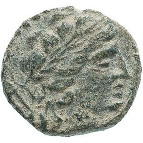 Greek Coins. Sicilia. Lilybaeum. AE 19 mm. dopo il 241 a .C. D/ Testa laureata di Apollo a destra, con arco e faretra sulla spalla. R/ ??????????. Lira. SNG Cop. 374. SNG ANS. gr. 6.47 R. AE. BB. Patina verde valorizzata da delicata velatura calcarea. Intatta.