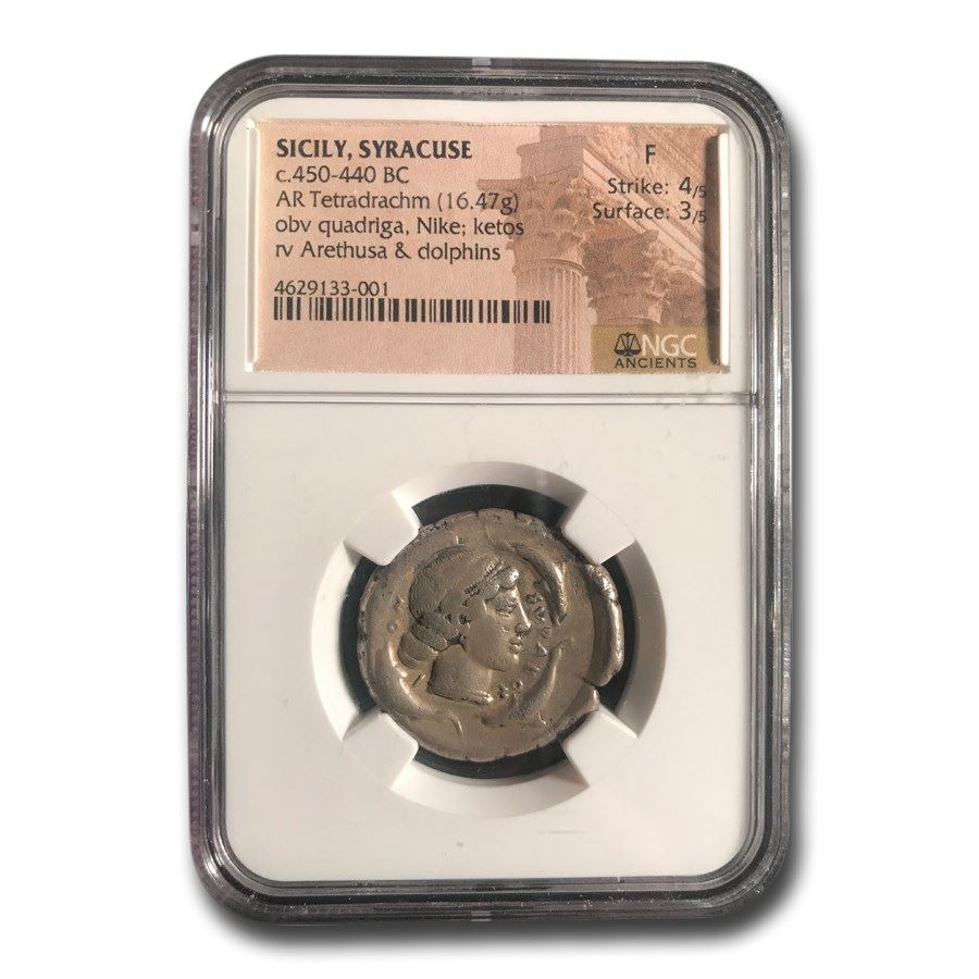 Sicily Syracuse Silver Tetradrachm (450-440 BC) Fine NGC