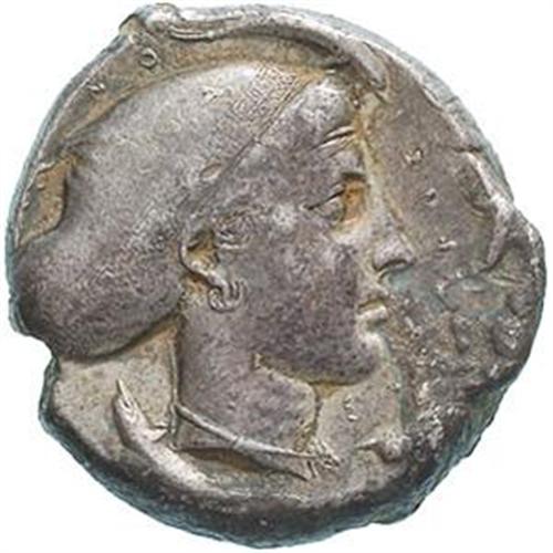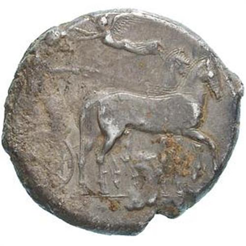 Greek Coins. Sicilia. Siracusa. Tetradrachm, 450-439 a.C. D/ Quadriga al passo a destra, condotta da un auriga. Sopra, Nike vola a sinistra e lo incorona. R/ SV????S???. Testa di Aretusa a destra. Intorno, quattro delfini. Boeh. 695. gr. 17.16 R. AG. Ossidazione marginale nel campo del R/, altrimenti qBB/BB.