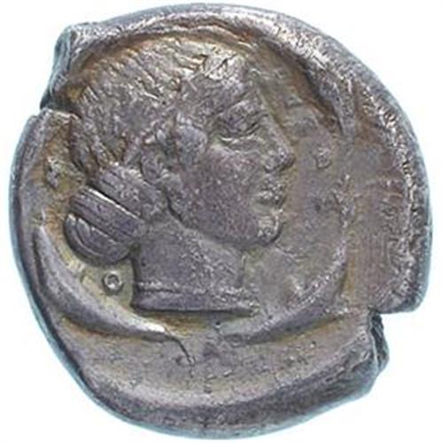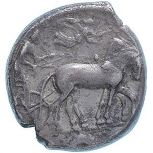 Greek Coins. Sicilia. Siracusa. Tetradrachm, 450-439 a.C. D/ Quadriga al passo a destra, condotta da auriga. Sopra, Nike in volo a destra incorona i cavalli. In esergo: mostro marino. R/ SVPAKOSION. Testa di Aretusa a destra. Intorno, quattro delfini. Cfr. SNG ANS 147. gr. 16.69 R. AG. BB.