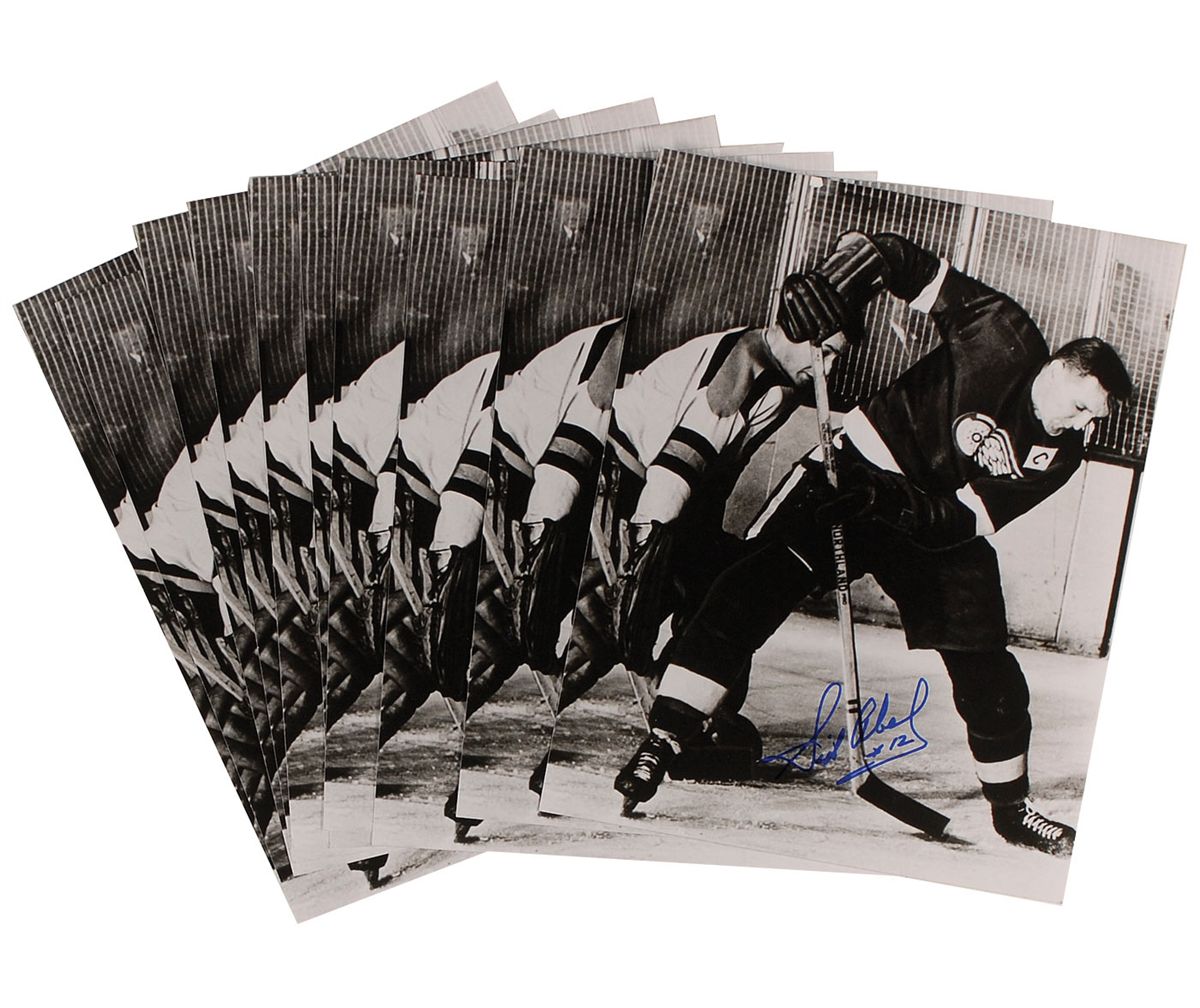 Detroit Red Wing icon and NHL Hall of Famer (1918–2000). Ten identical satin-finish 8 x 10 photos of Abel on the ice for the Detroit Red Wings, each signed in blue felt tip, “Sid Abel #12.” In fine condition.