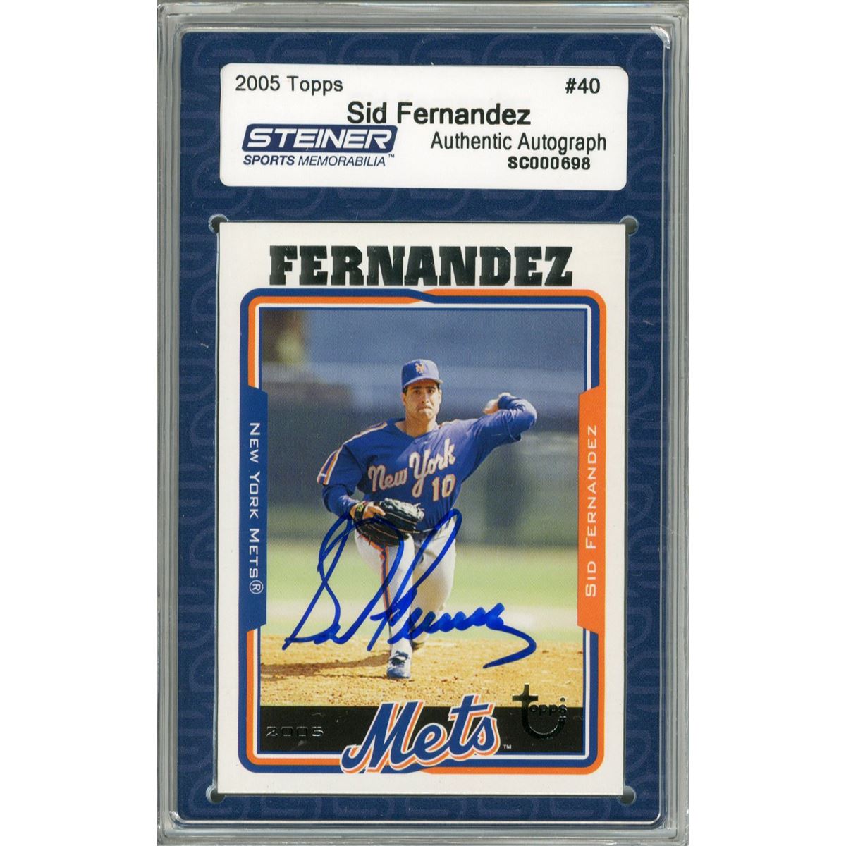 Sid Fernandez Signed 2005 Topps Card - Mets - 1/2 way through pitch front view (Slabbed by Steiner)
