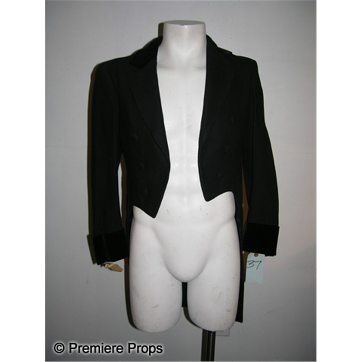 Black tuxedo jacket with velveteen collar, worn by a dancer named Sid Gordon in the Golden Age of Hollywood. Includes an Eaves Costume Company label on the inner pocket with Gordon's name handwritten on it.
