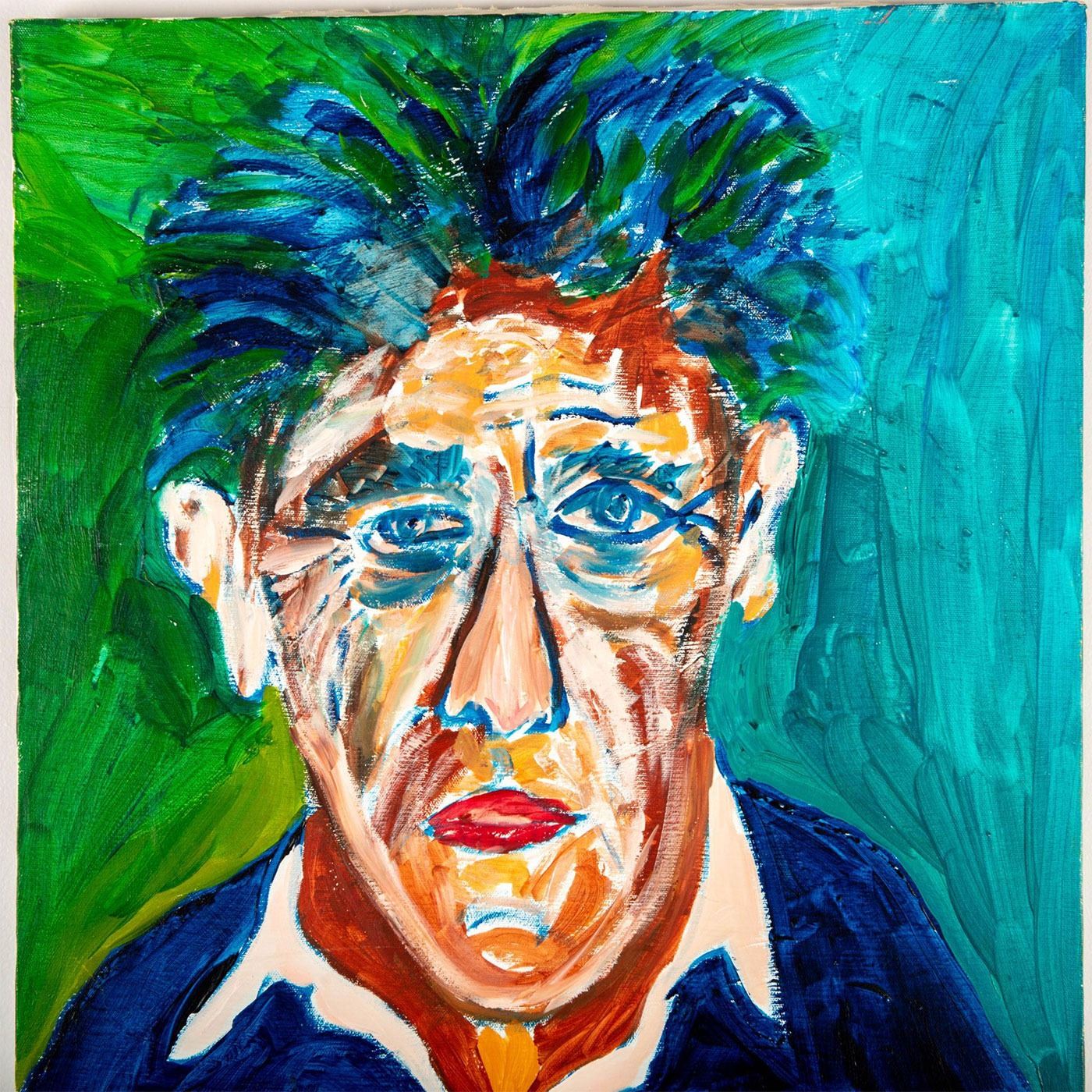 Sid Rheuban (American b. 1924) Acrylic on Canvas, Self-Portrait Sid in Blue and Green
