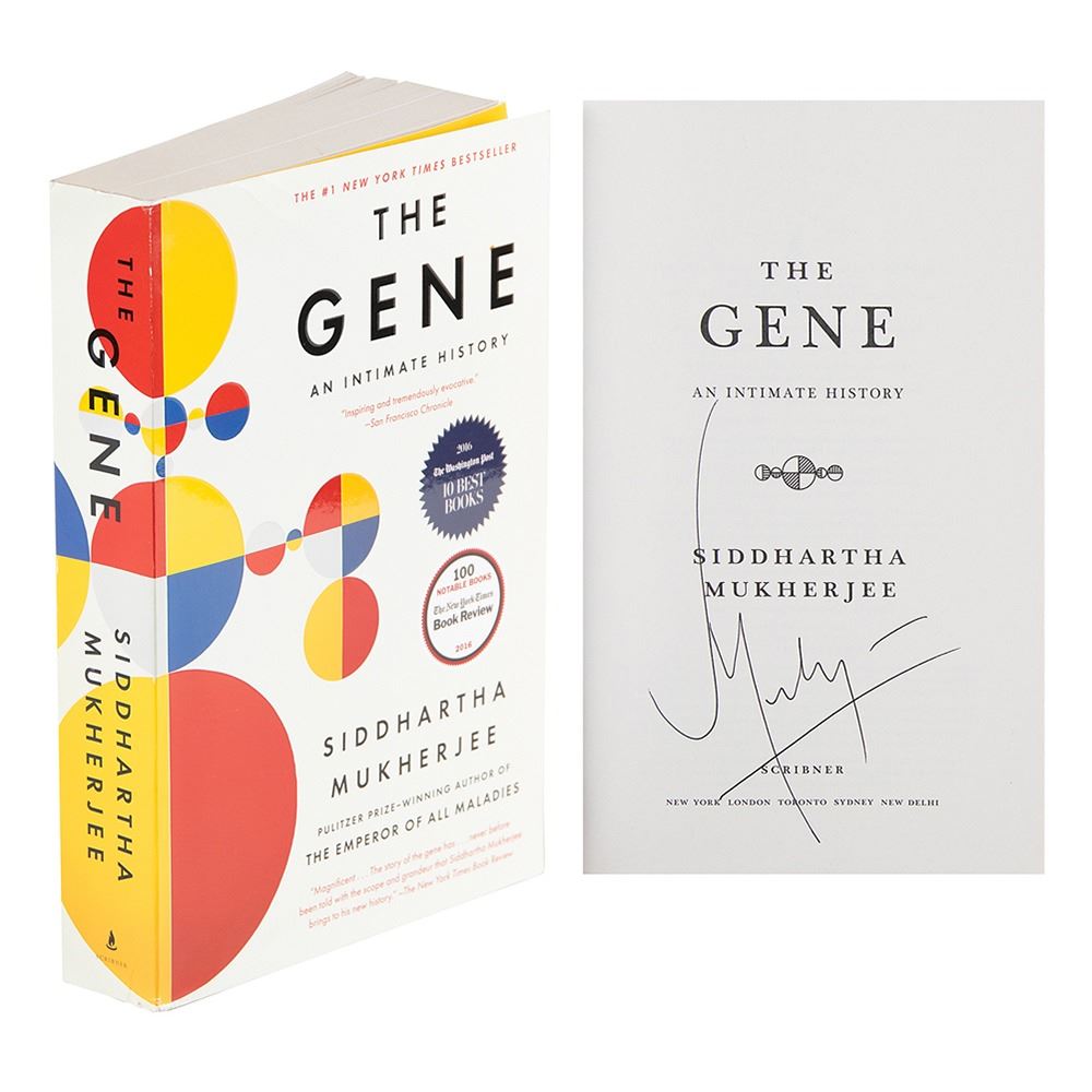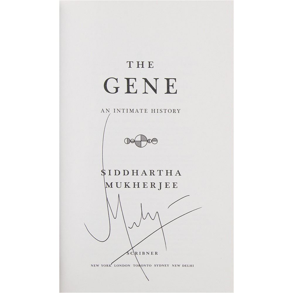 Signed book: The Gene: An Intimate History. First Scribner trade paperback edition. NY: Scribner, 2016. Softcover, 6 x 9.25, 594 pages. Signed on the title page in black felt tip by Siddhartha Mukherjee. In fine condition.