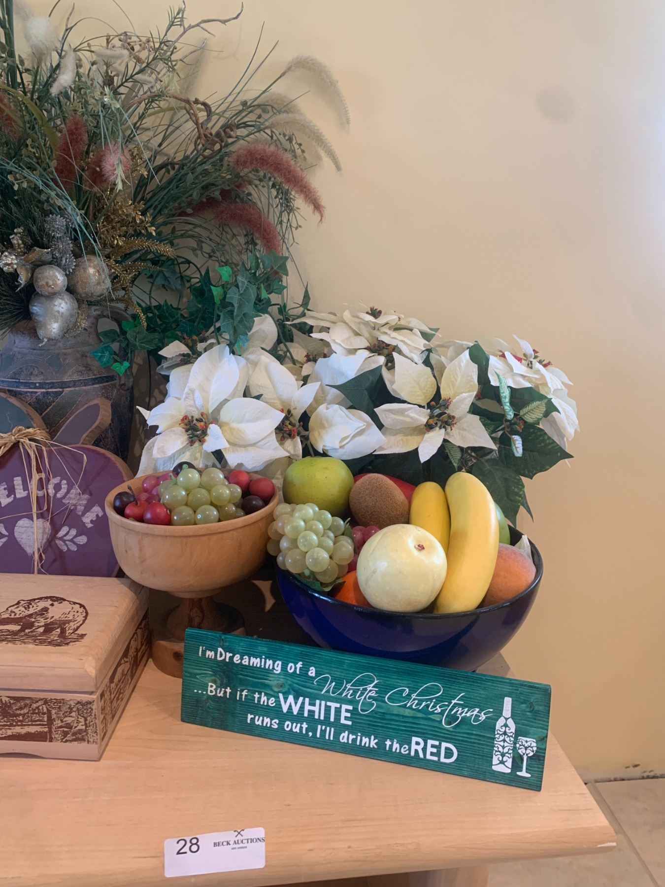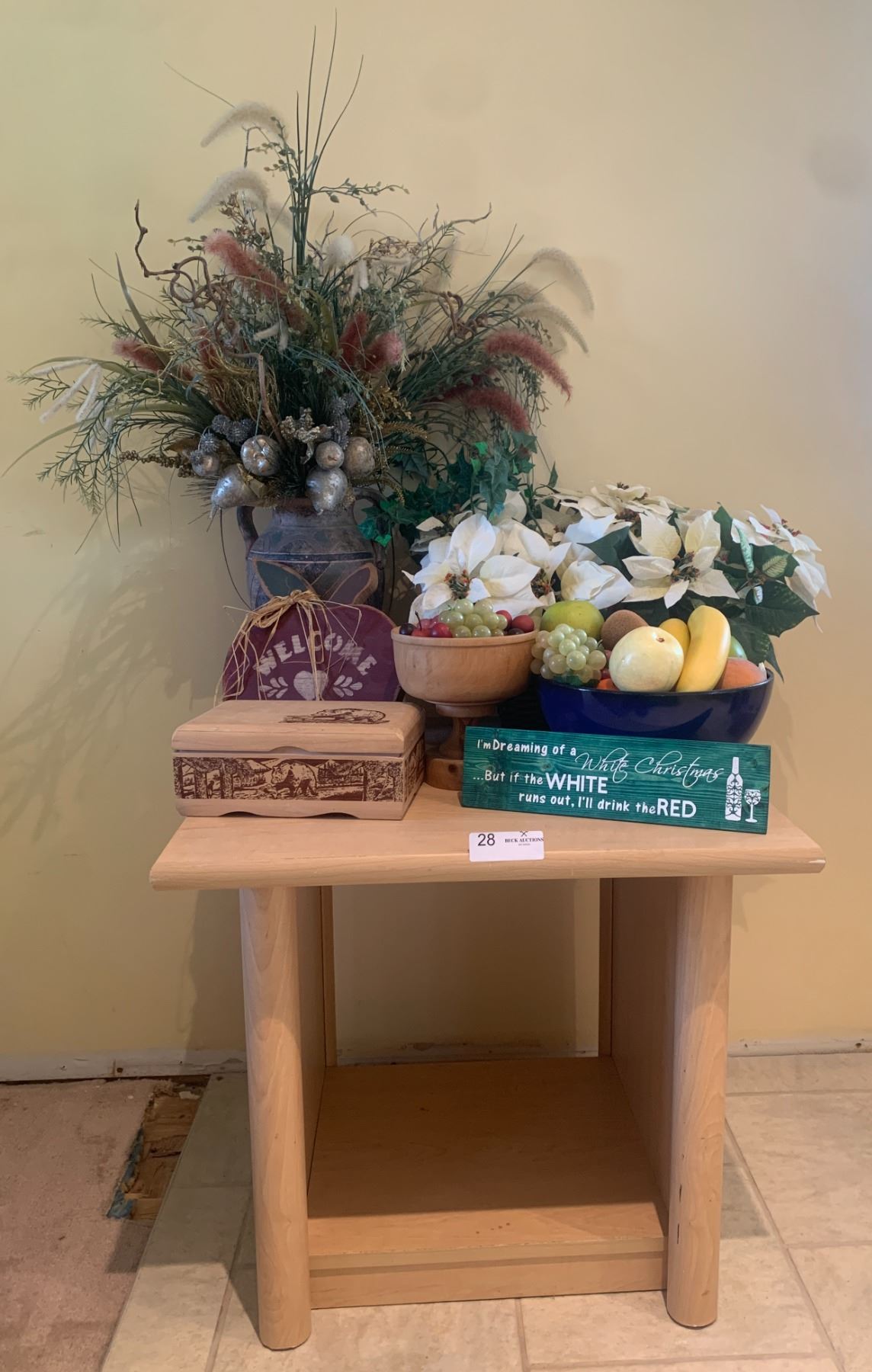 Side Table, 24"x 24" x 24", and Home Decor of Artificial Flowers and Fruit