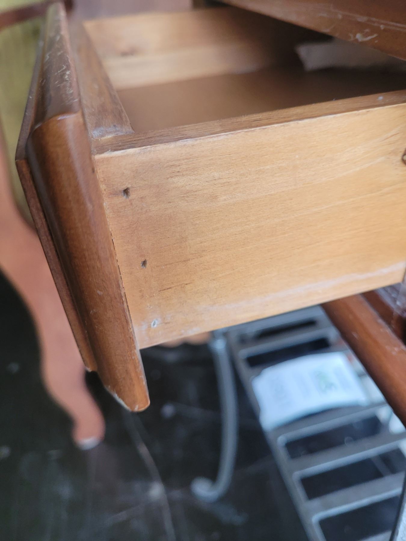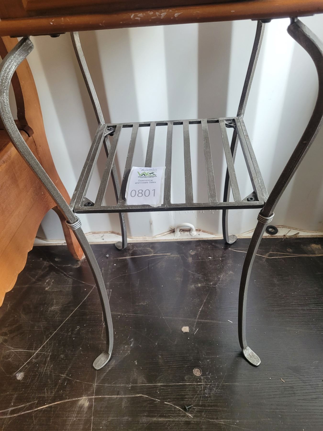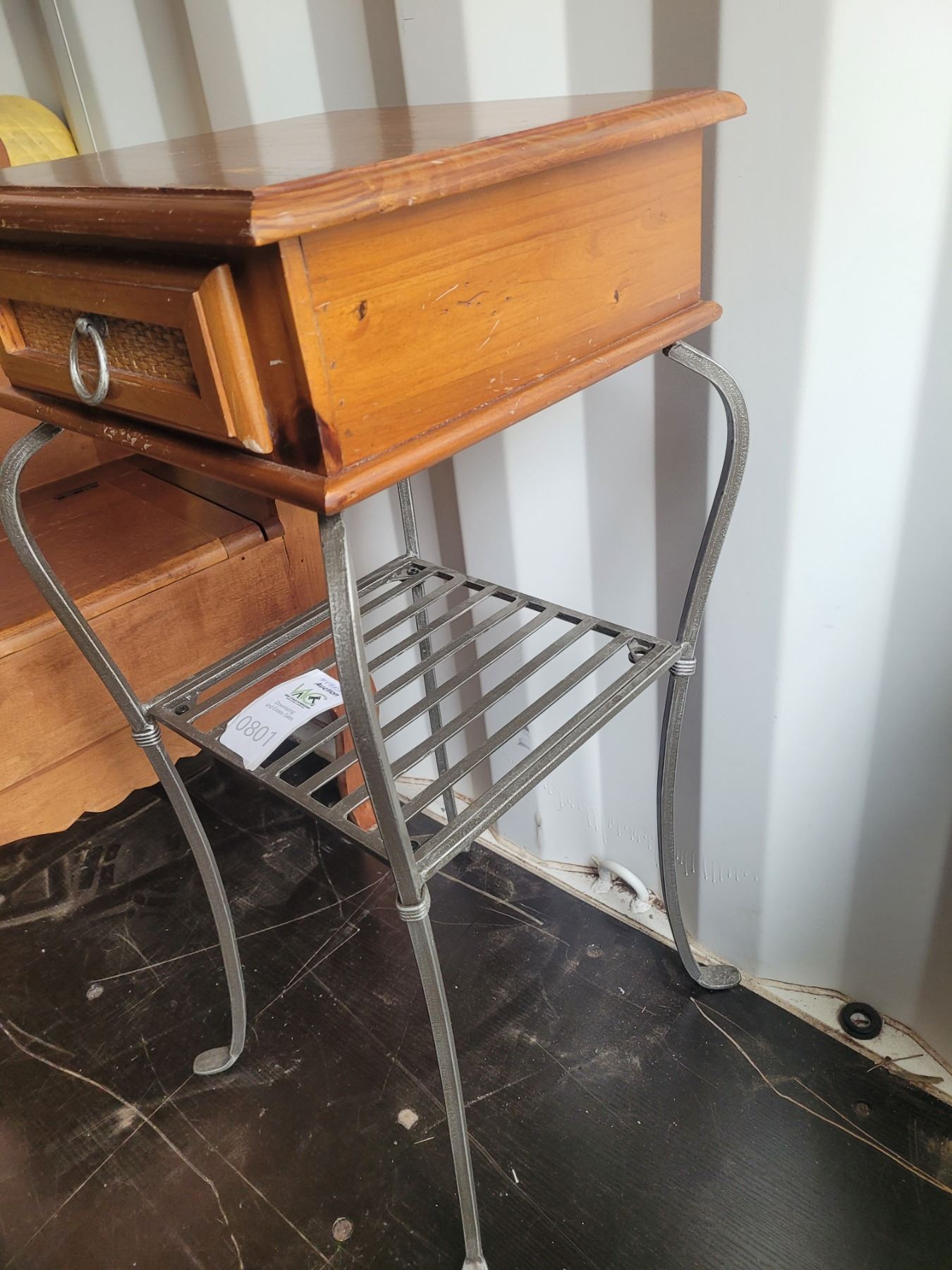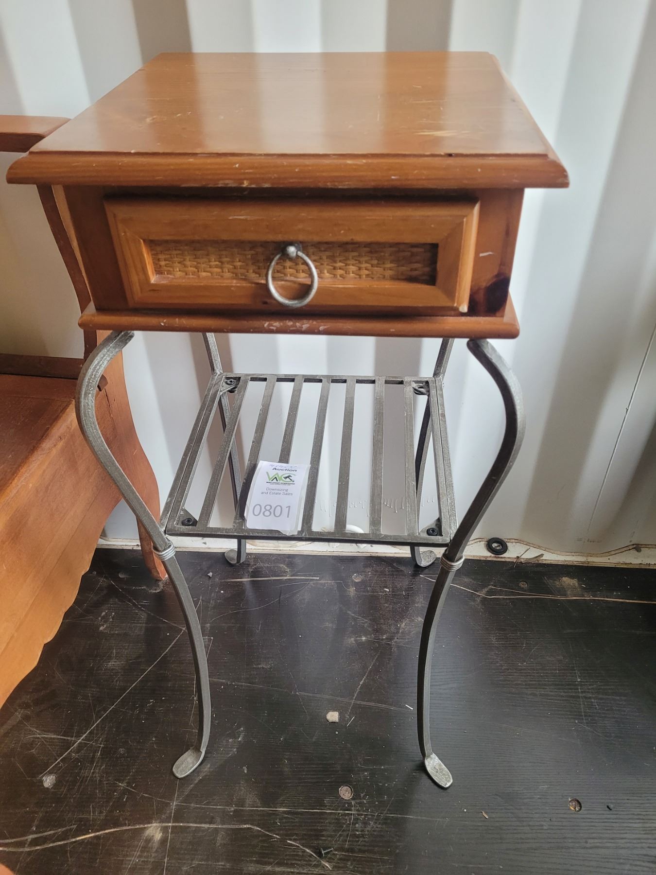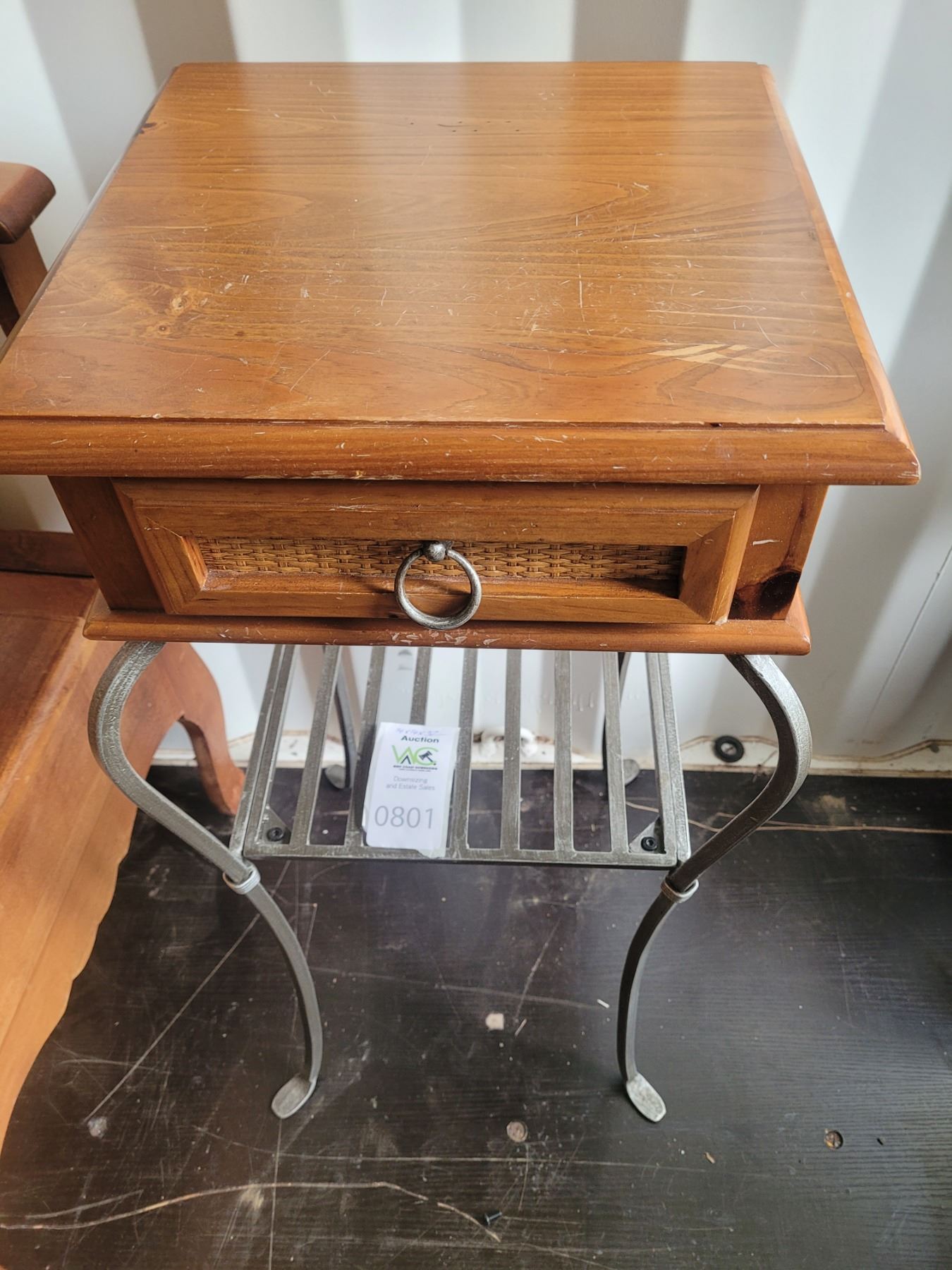 Wood & Metal Side Table with one drawer and shelf. 14x14x32. Pickup at 11 am
