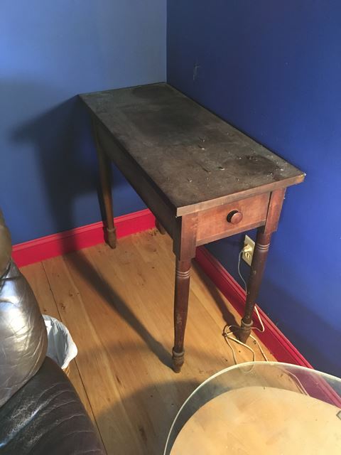 Wooden side table measures approx. 35L"x15.25W"x30.5h". This lot can be picked up in Woodbury CT for local buyers, or our shipper can pick up and ship to your location.