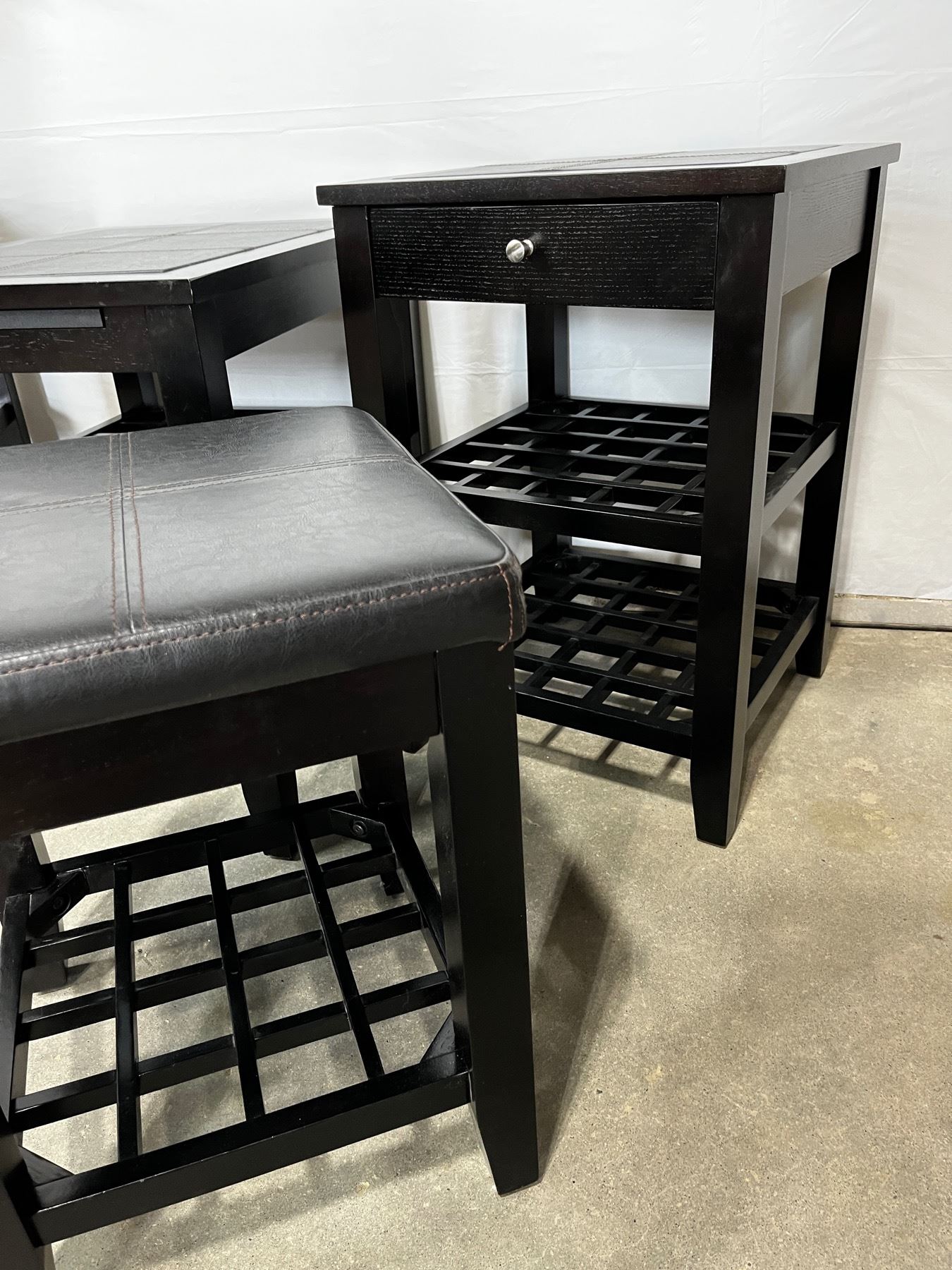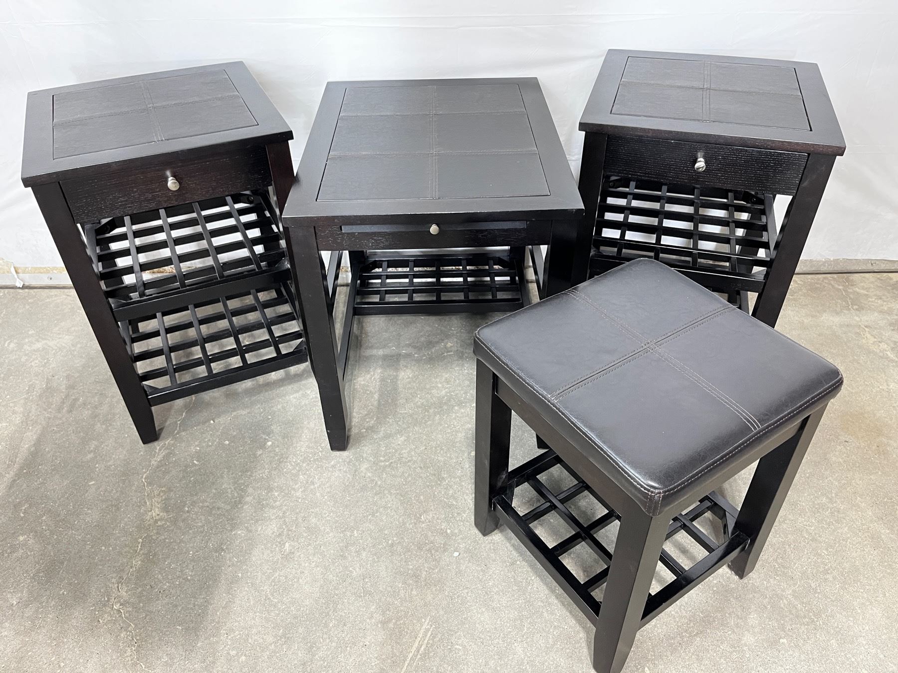 Made By: Return Gold International Co.,Ltd. Coffee table 24"H x 26"L x 20"W Side tables 2 x 26"H x18"L x 18"W Stool 20"H x 15"L x 15"W 4 pieces total