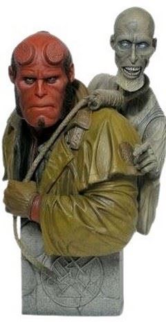 This is a, limied-edition polystone bust featuring the supernatural hero, Hellboy, and the spectral figure of the Talking Corpse (Tam O'Clannie) from the 2004 Hellboy film, directed by Guillermo del Toro.