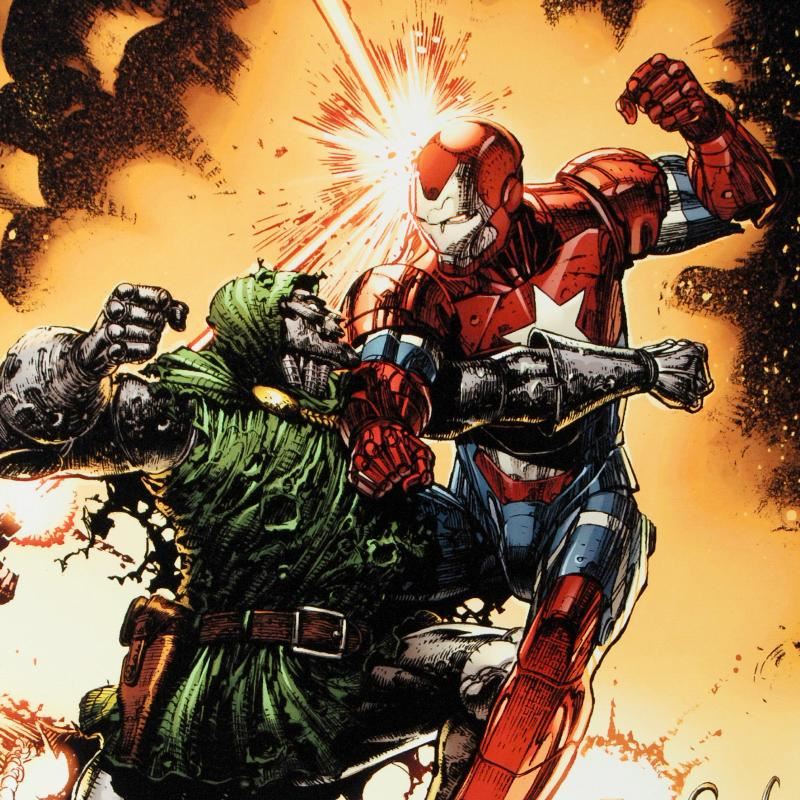 A piece of comic book history, this limited edition, from original art by David Finch, depicts an epic battle between Iron Patriot and Dr. Doom. In 2003, Finch came to Marvel Comics for a year-long arc on Ultimate X-Men, after which he began work on The Avengers and thereafter The New Avengers. He has also worked on such titles as Captain America, Spider-Man and the Hulk. "Siege: The Cabal #1" is a limited edition giclee on canvas by David Finch presented by Marvel Comics. This piece comes gallery wrapped and ready to hang. Includes Certificate of Authenticity! Measures approx. 18" x 27" (image).