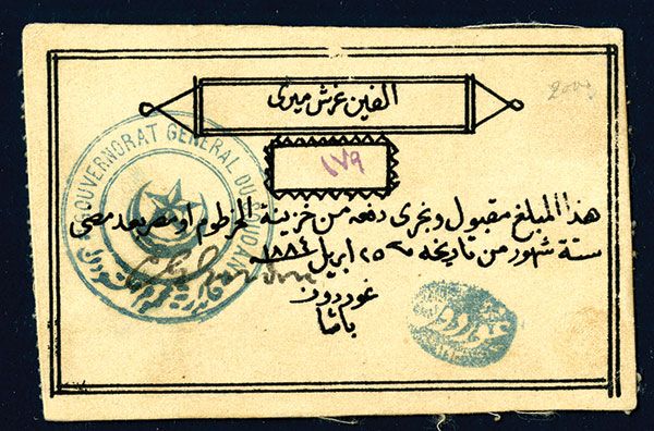 Khartoum, Sudan, 1884, 2000 Piastres, P-S108b, Issued banknote, S/N 179, PMG graded Choice About Uncirculated 58 NET with notation of backing, historic note. The Siege or battle of Khartoum was fought in and around Khartoum between Egyptian forces led by British General Charles George Gordon and a Mahdist Sudanese army led by the self-proclaimed Mahdi Muhammad Ahmad. Khartoum was besieged by the Mahdists and defended by a garrison of 7,000 Egyptian and loyal Sudanese troops. After a ten-month siege, the Mahdists finally broke into the city and the entire garrison including Gordon was killed to the last man.